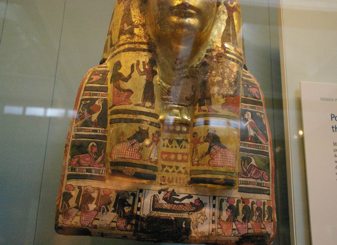 | Plastrons qui adoptent, comme pour les portraits dit du Fayoum, le visage du défunt. | ||||