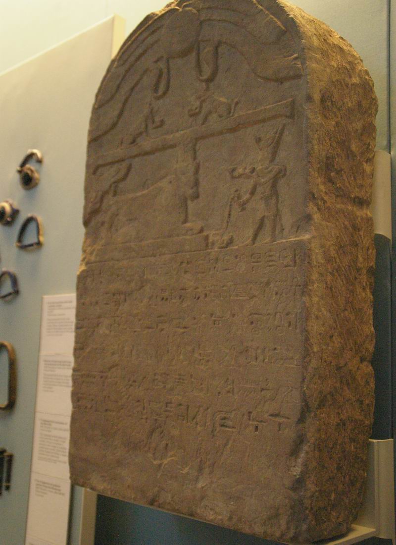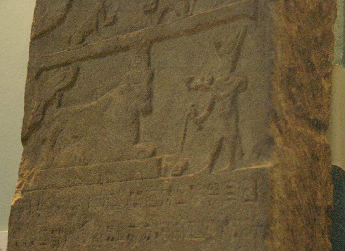 | Stèle d'Epoque Ptolémaïque gravée d'un offrande du roi au dieu Apis. |