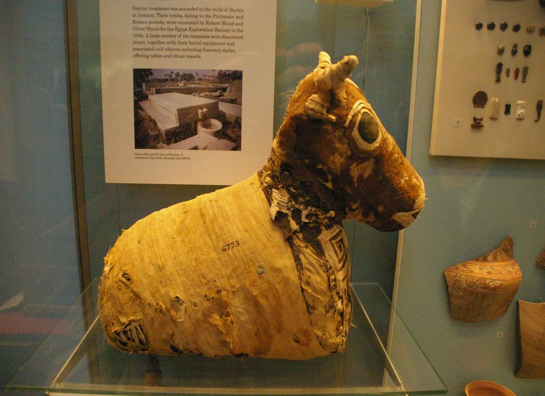 | Simulacre d'une momie évoquant le taureau de Boukhis. |