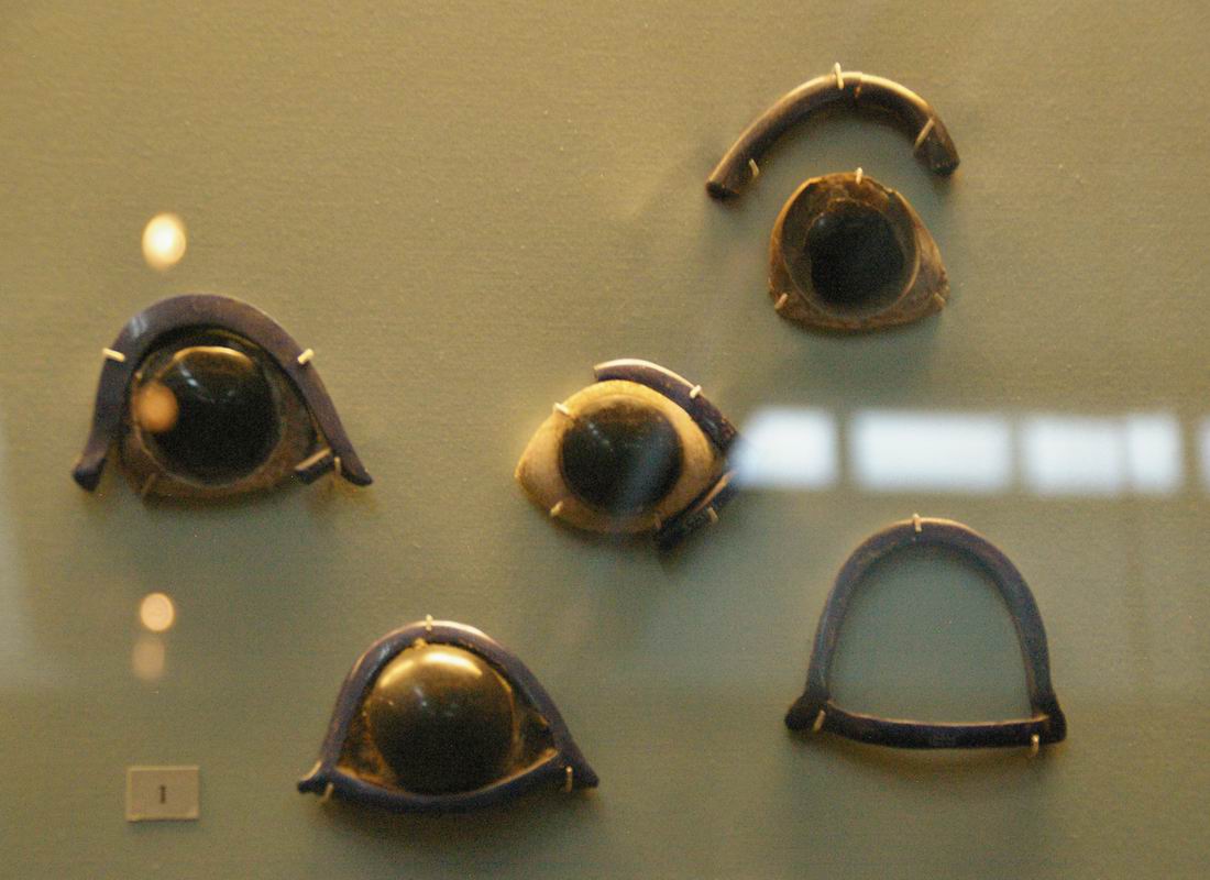 | Yeux en pierre cerclés. |