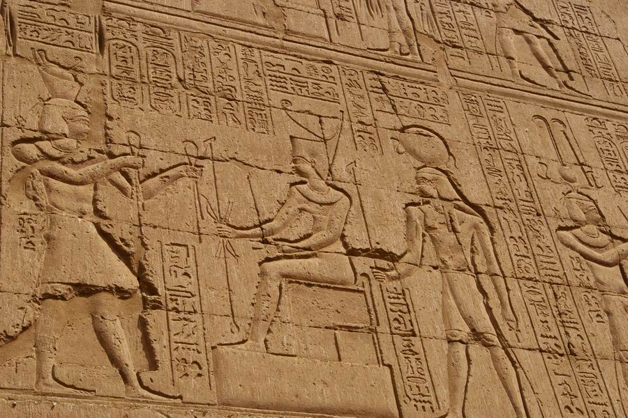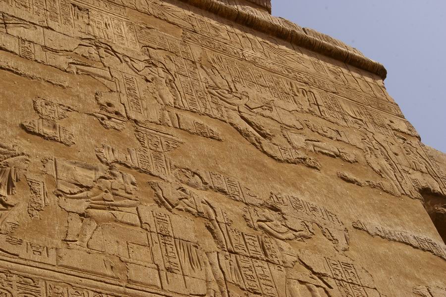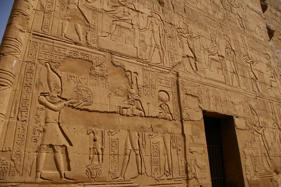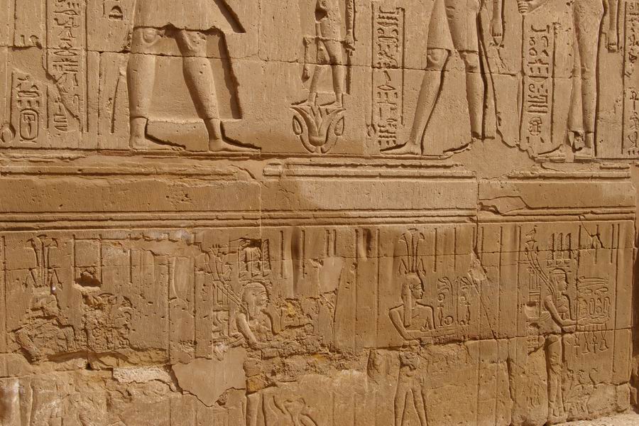 mur Sud est décoré de scènes d'offrandes du roi aux divinités. Procession des nomes qui apportent des offrandes. |