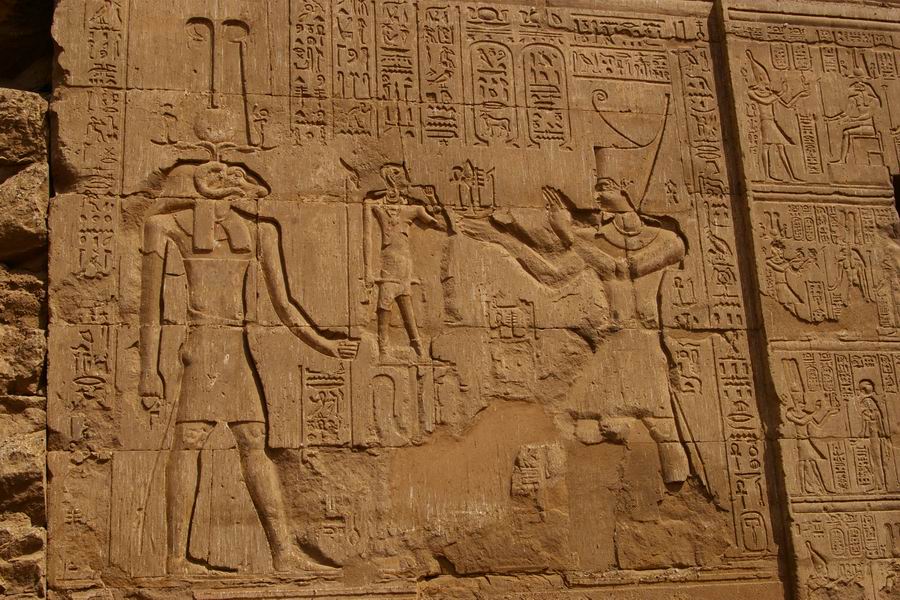 | Offrandes des sceptres au dieu Héqa et au dieu Khnoum. |