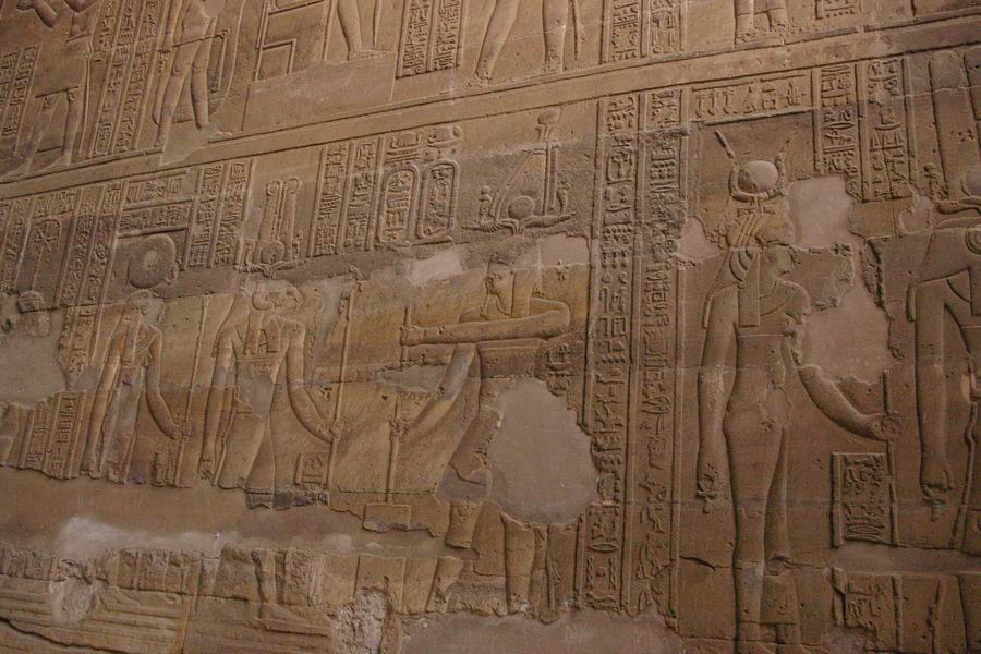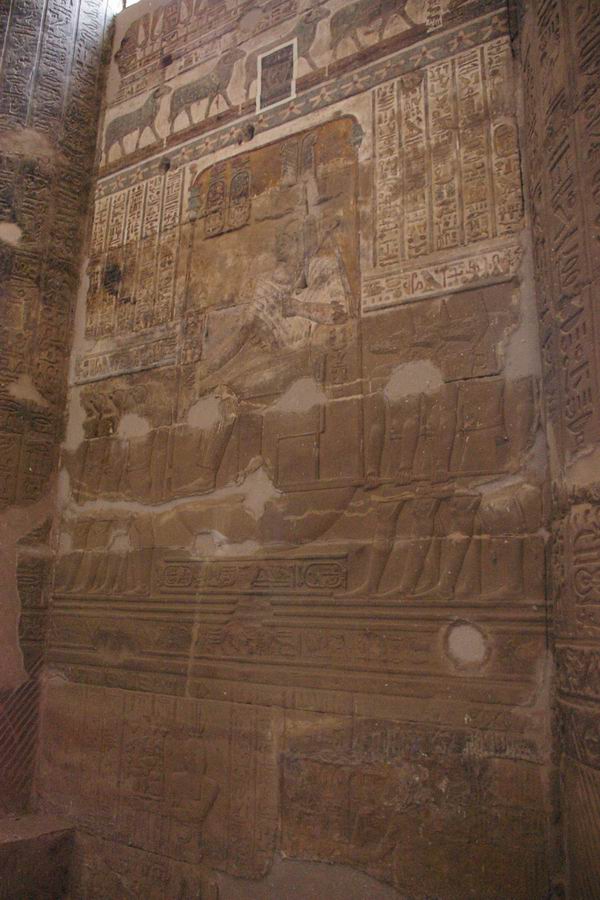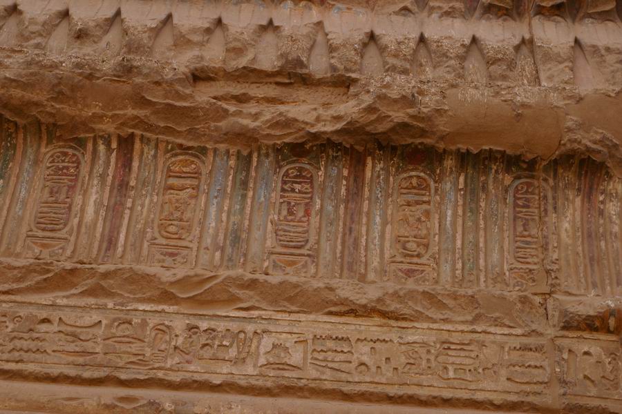 bahuts a conservé ses couleurs. Les cartouches du roi sont protégés par une frise de cobras. |