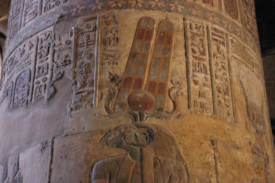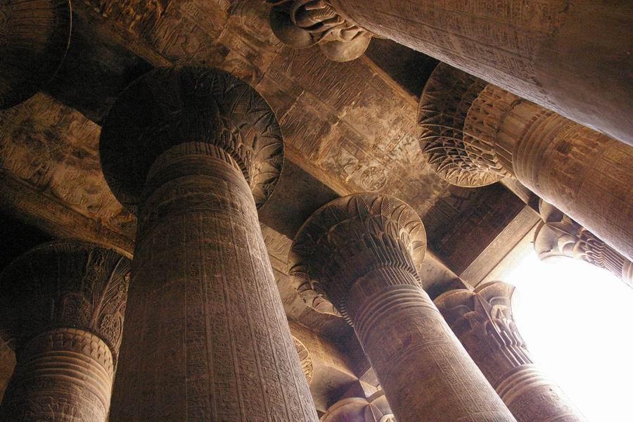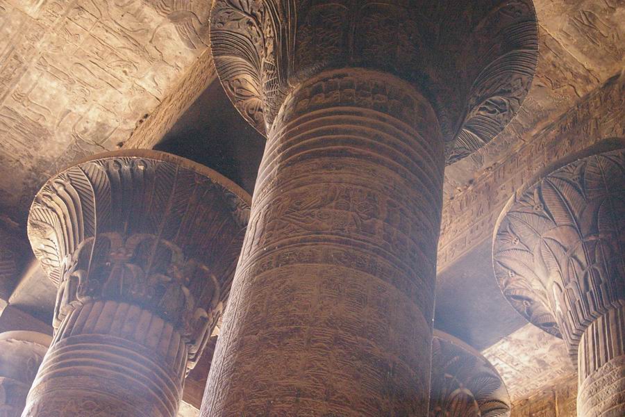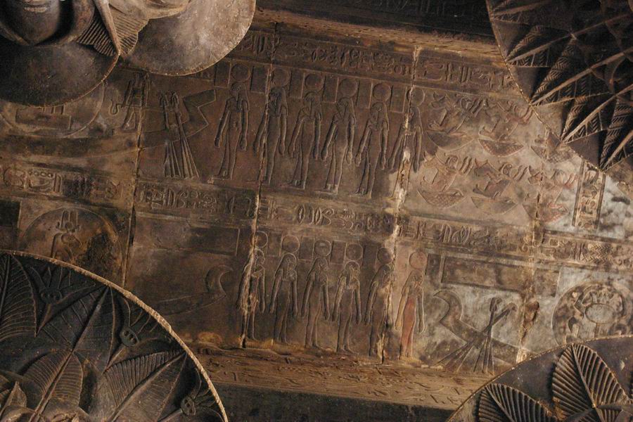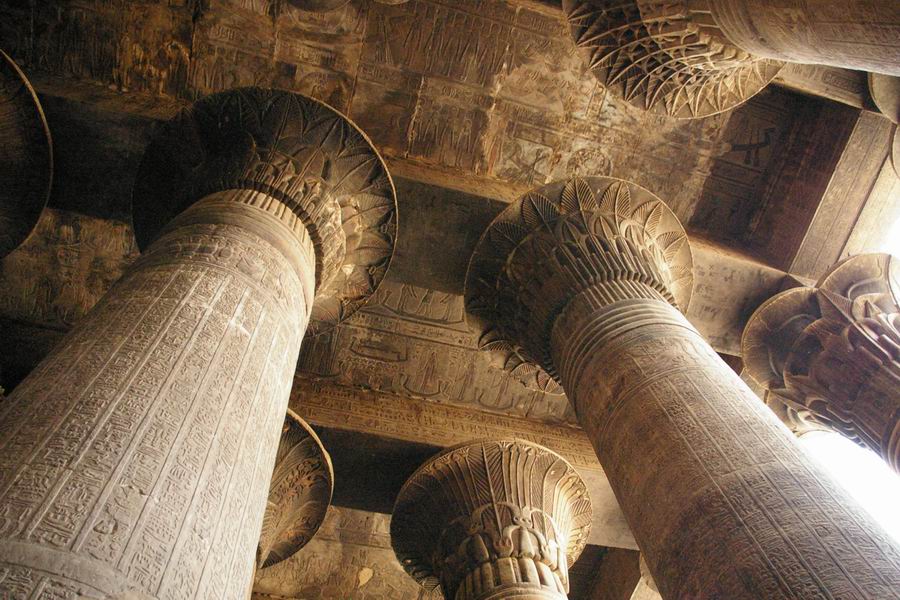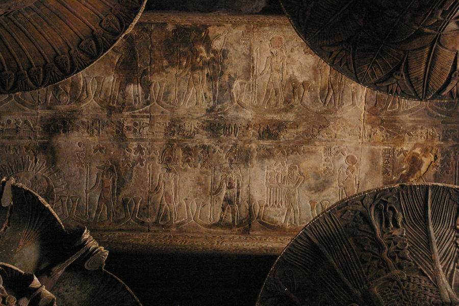 | Chapiteaux et architraves décorés de scènes astronomiques. |