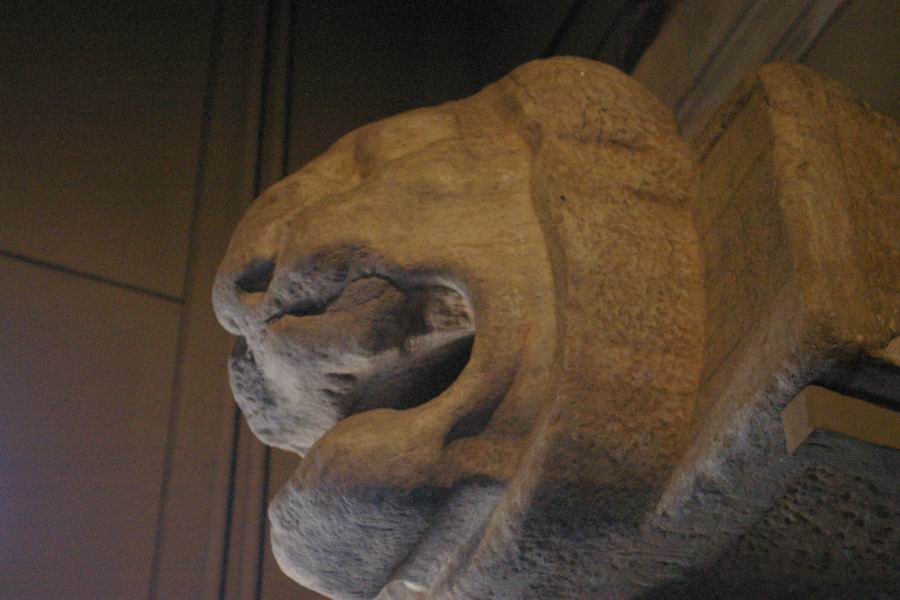 | Tête d'un lion faisant office de gargouille. | |||