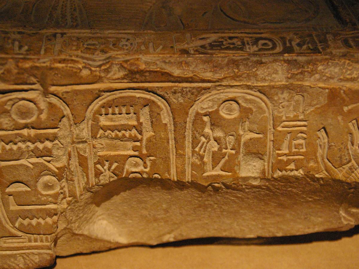 bandeau d'offrandes, comporte six divinités encadrées par le hiéroglyphe de