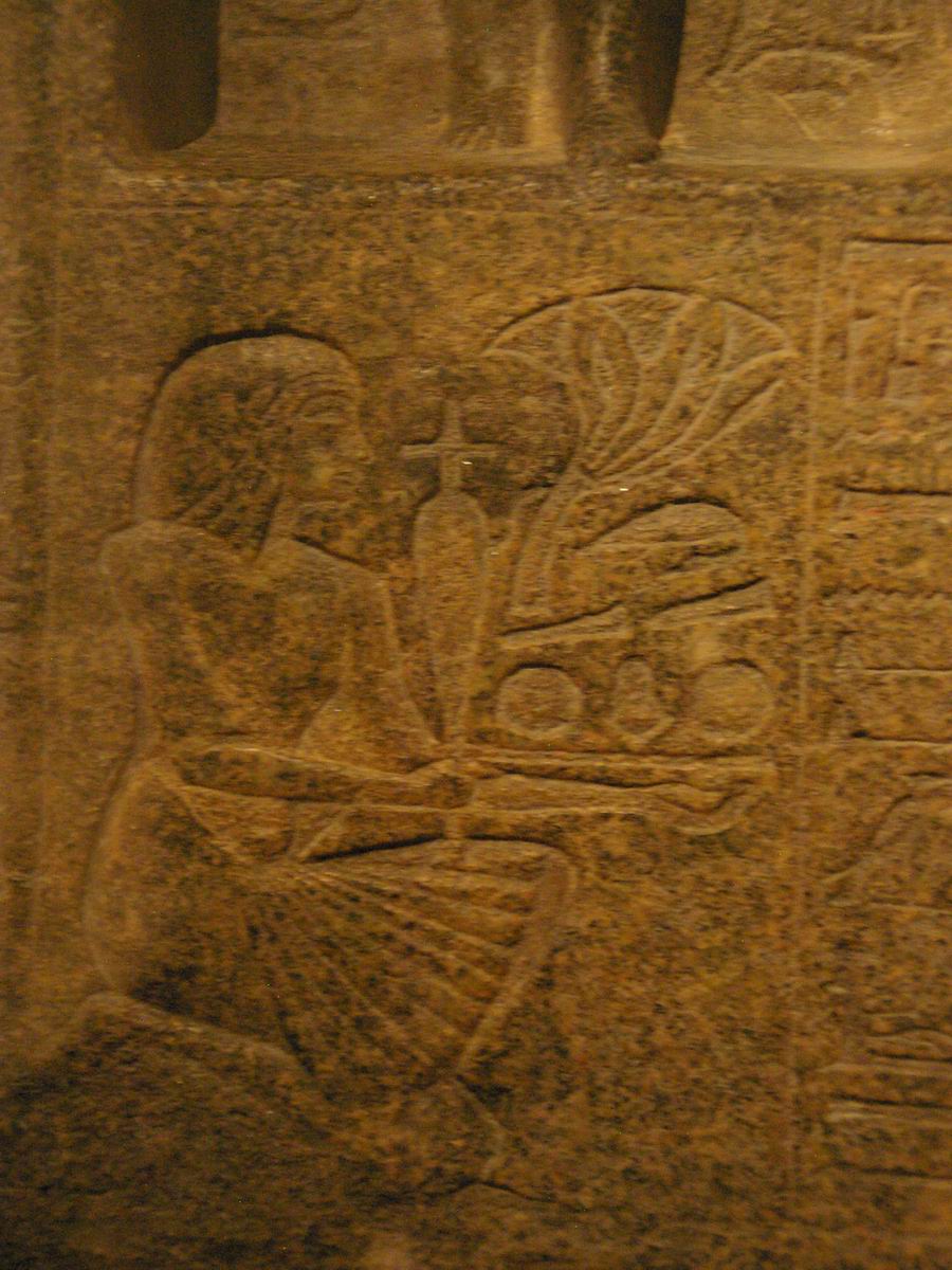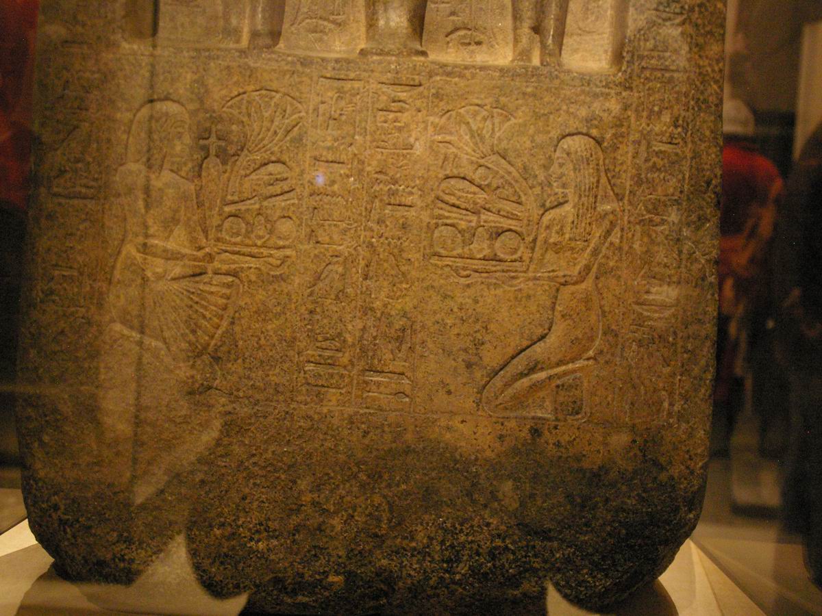 même attitude que sur la face principale, en train de faire des offrandes à