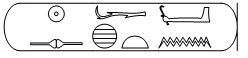 reprenant le hiéroglyphe de l'offrande, hetep, coupé en deux pour
