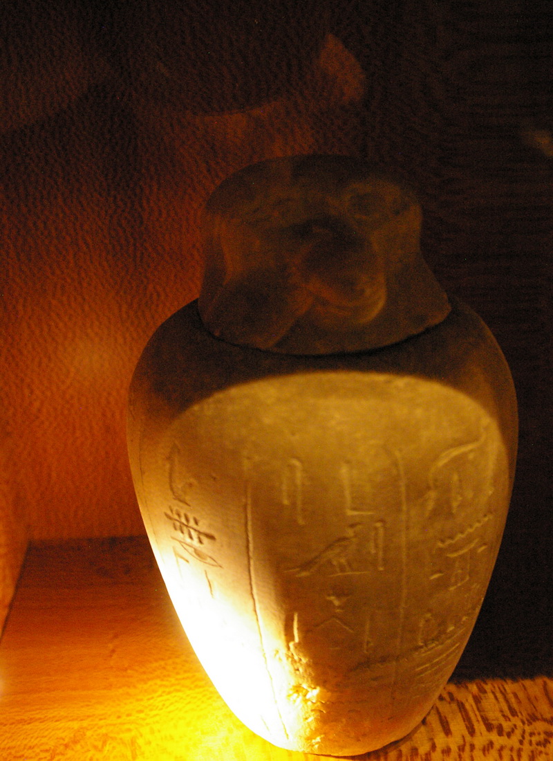 | Les vases canopes ne sont pas toujours taillés dans de la pierre; ils peuvent être moulés en terre cuite. |