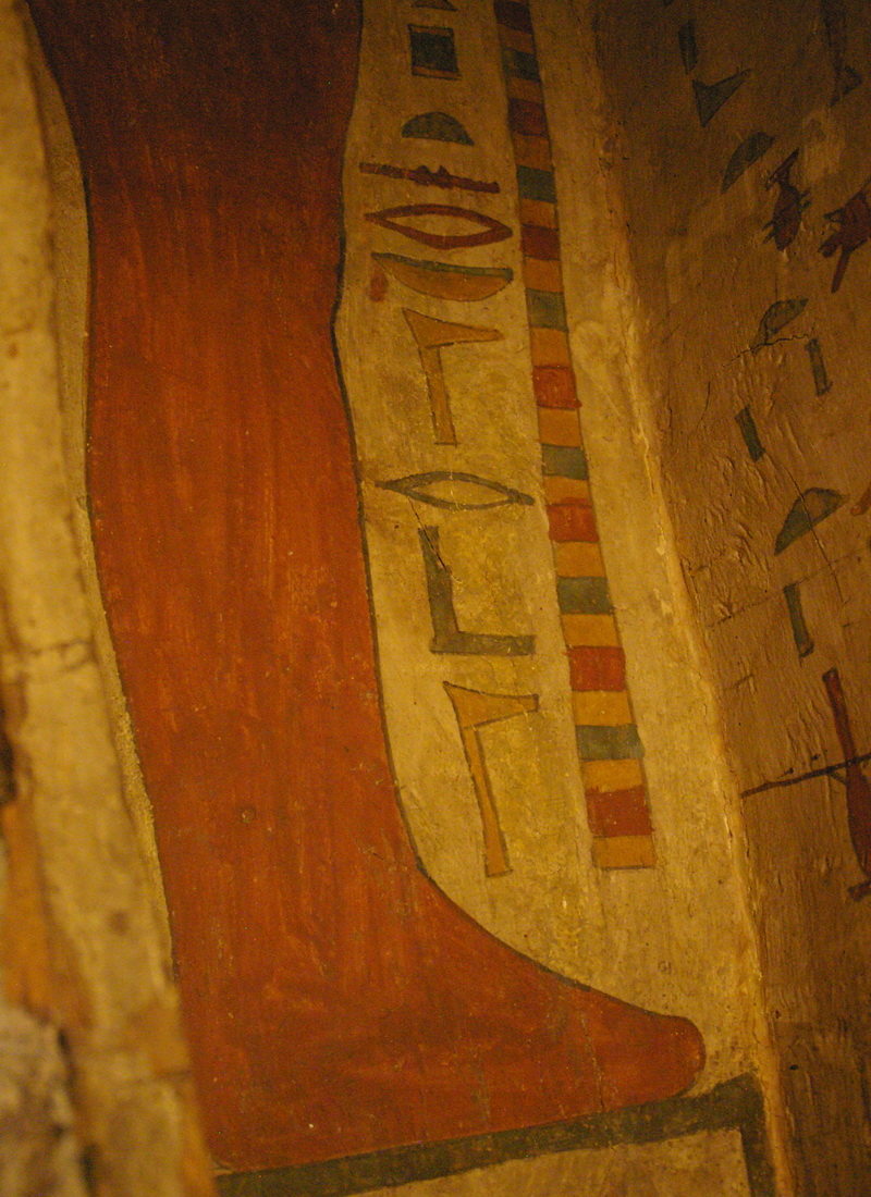 verticalement ses noms : "Sokar, Ptah-Sokar-Osiris", inscription qui se poursuit