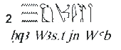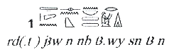 | Nebmaâtrê, Sobek maître de Semnou. Faire des prières au maître du Double-Pays, se prosterner devant celui qui règne sur Thèbes, par le prêtre-Ouâb, intendant du trésor d'Amon. Nebnéfer, né de la maîtresse de maison Djaouef. Fait par le supérieur des mystères, celui de Sobek, Nebnéfer. |