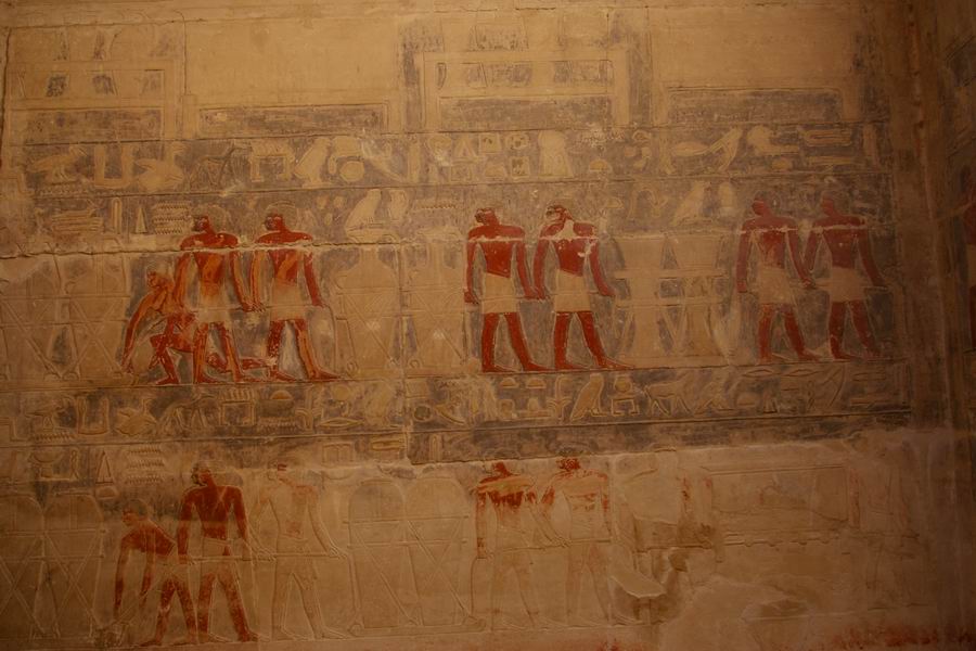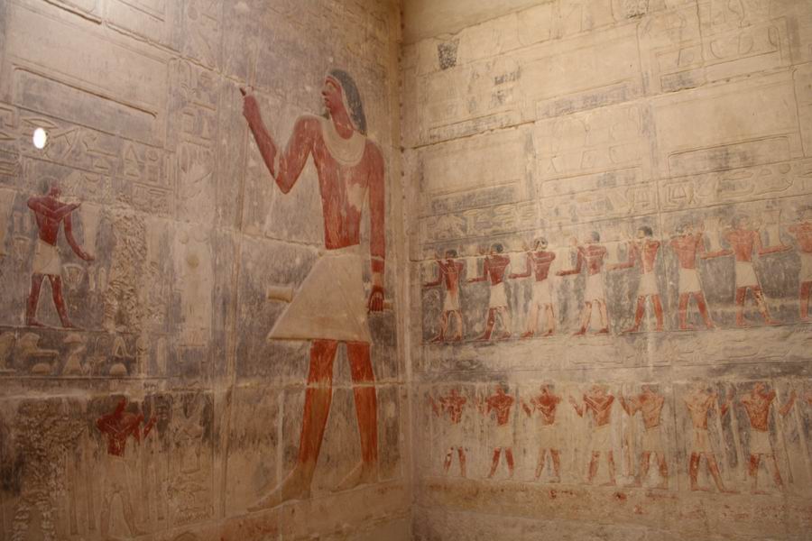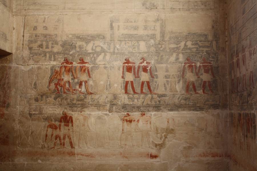 Tous les murs du mastaba portent des décorations, l'image prime sur le texte. |