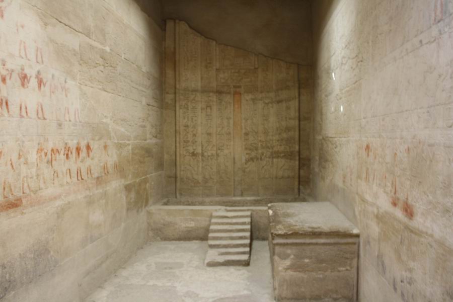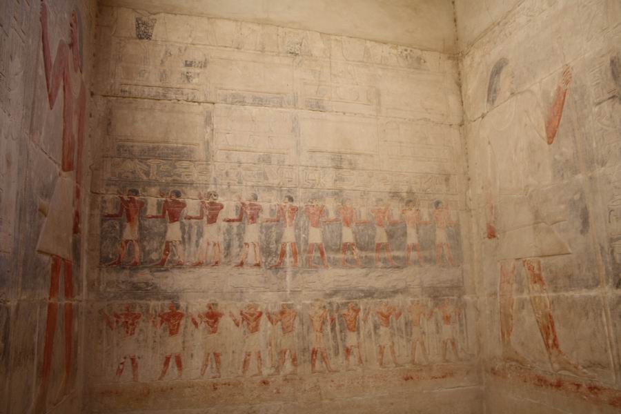 possède 5 chambres et le serdab inaccessible. Les dépendances de cette tombe sont plus importantes que la tombe proprement dite. Les sculptures du mastaba de Kagemni offrent une qualité d'exécution admirable. |