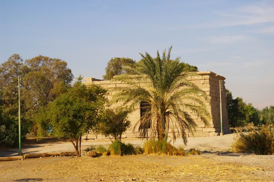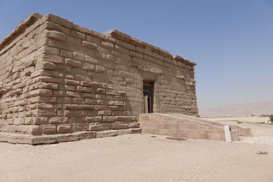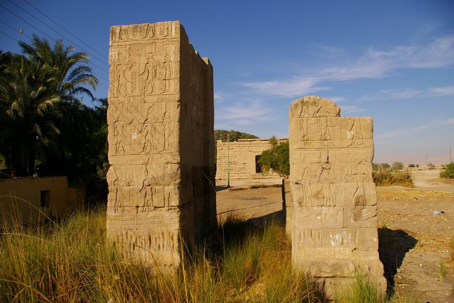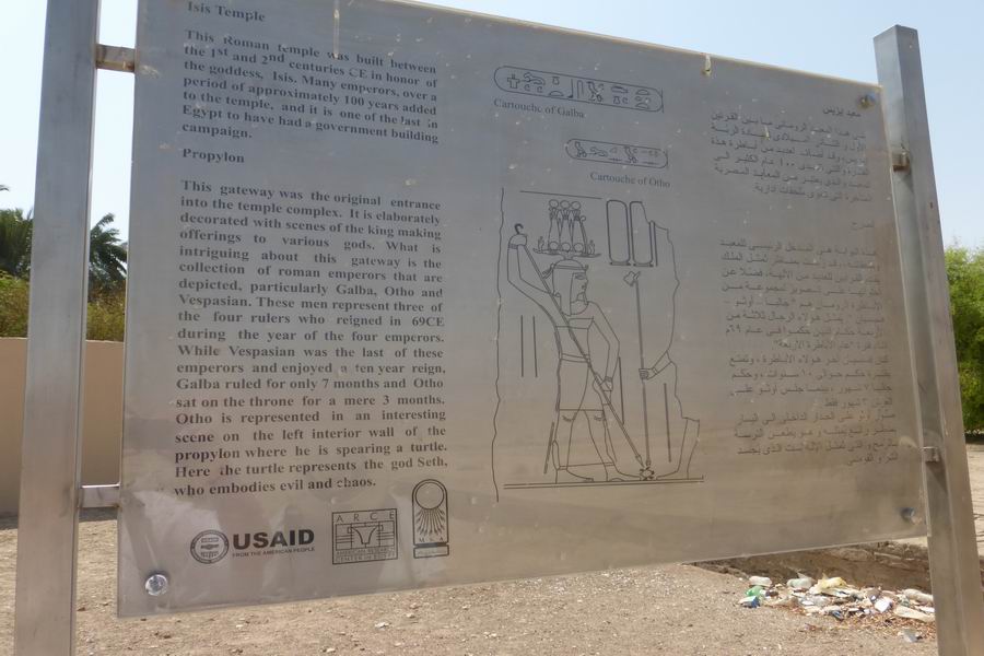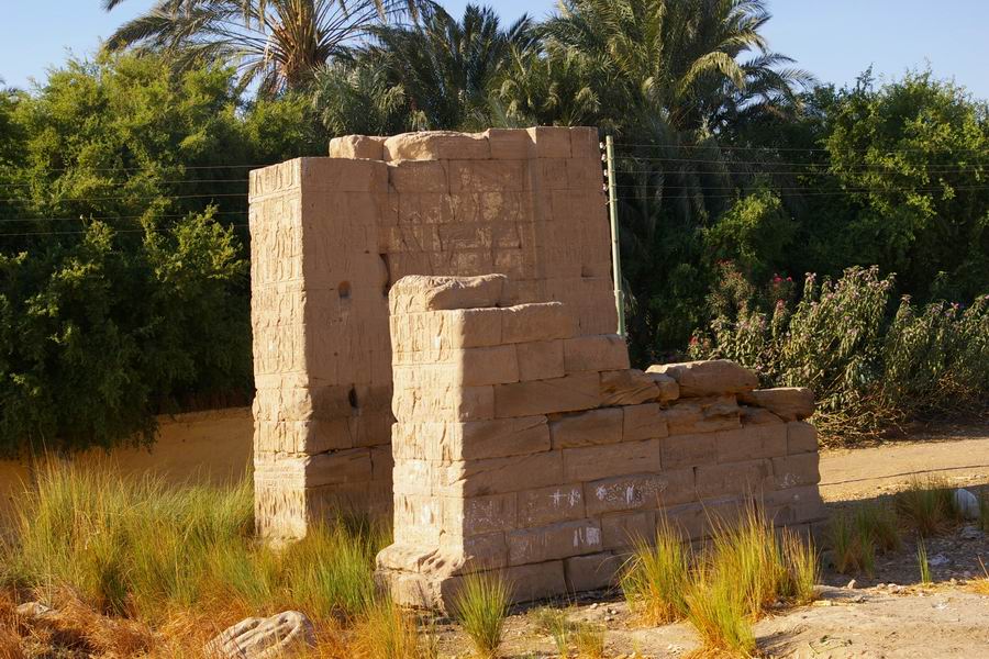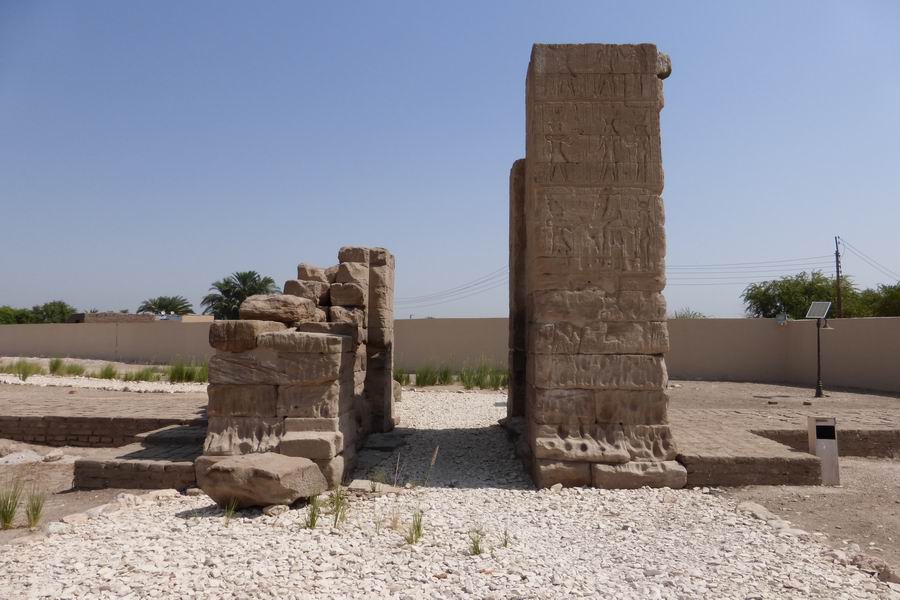 2008 Ce temple provient d'un remaniement d'un petit édifice un peu moins récent dont le pylône est au nom d'Othon, de Vespasien et de Domitien. |