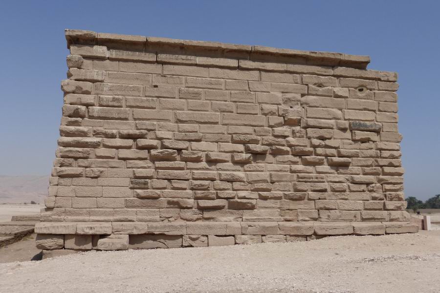 | Les blocs des murs extérieur du temple ne sont totalement ravalés. |
