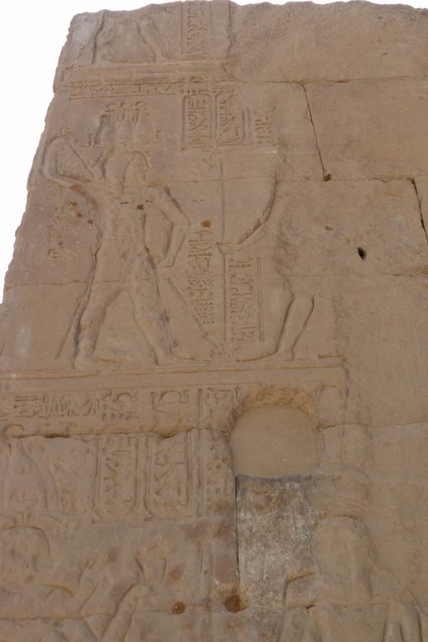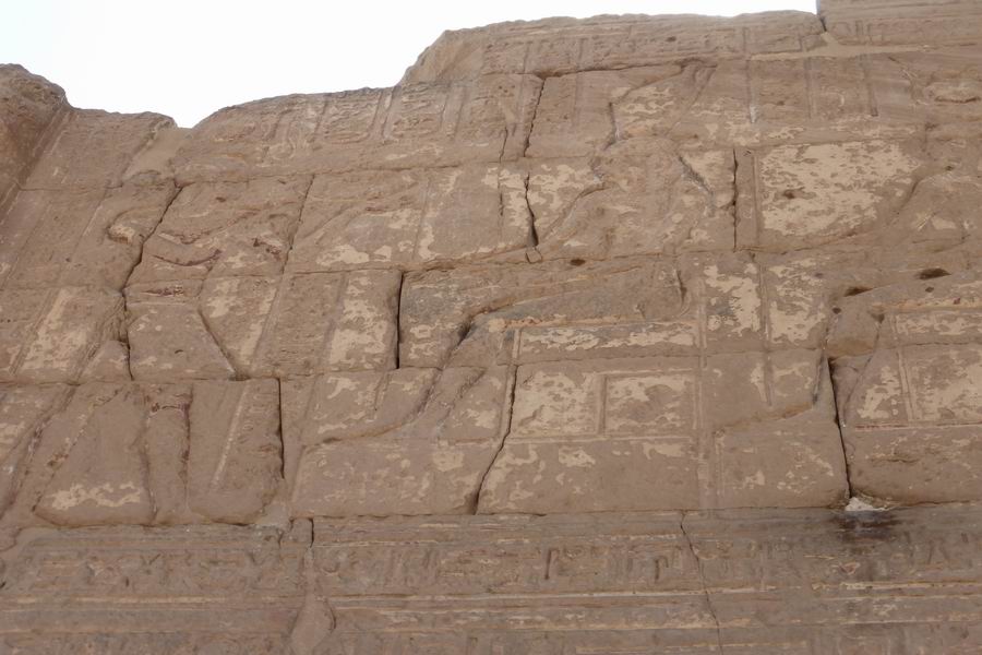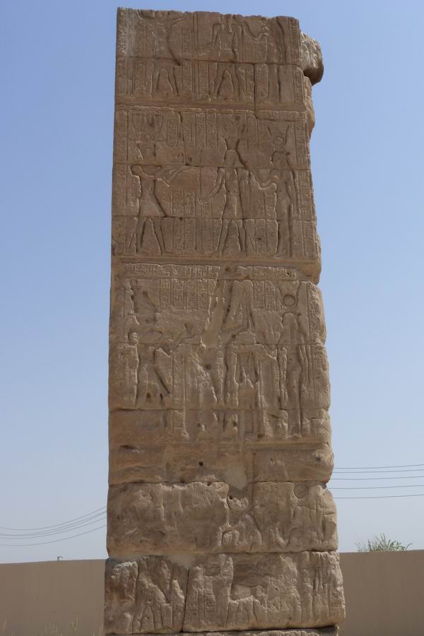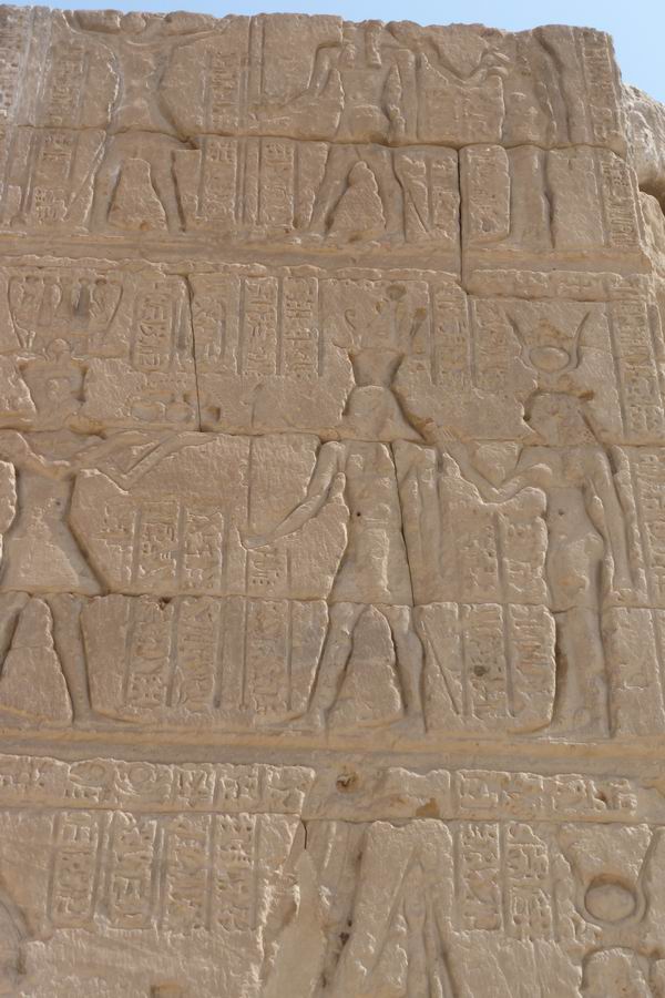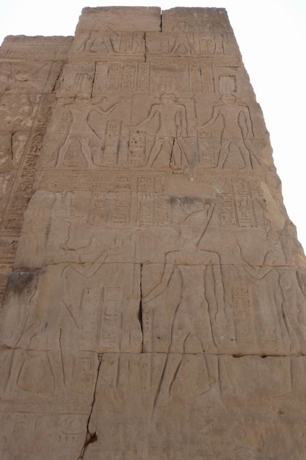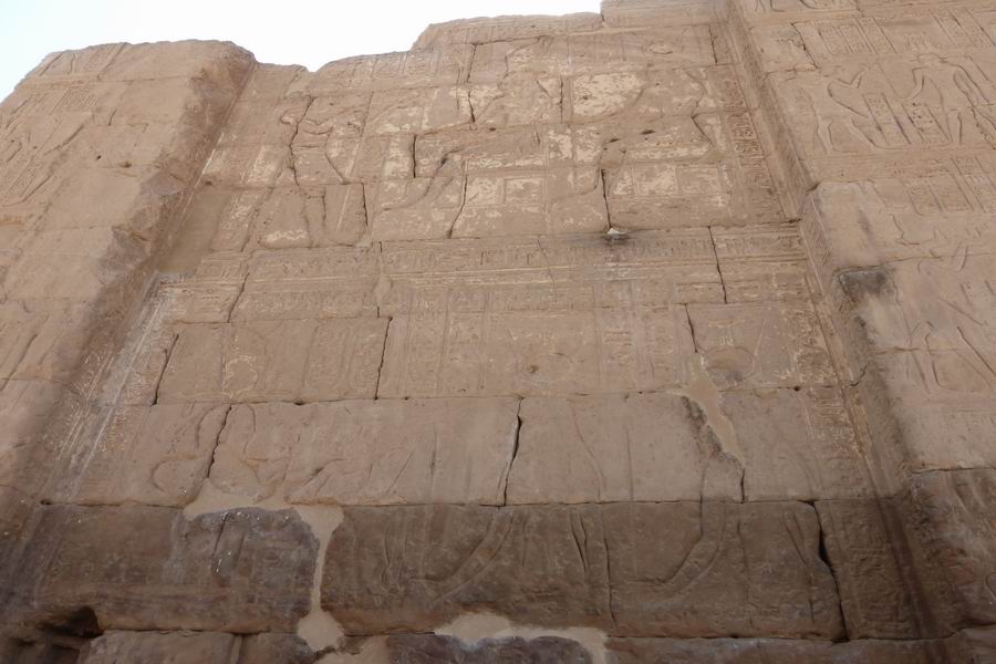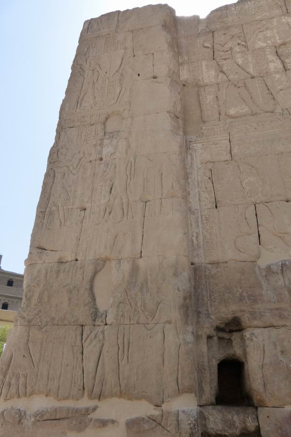 | La partie basse du pylône porte des textes hiéroglyphiques. |