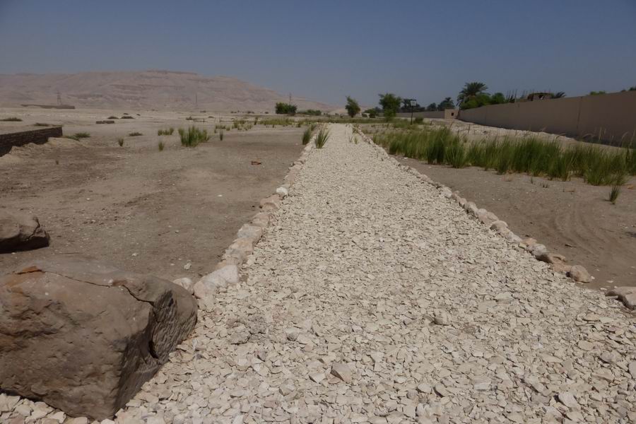 | L'allée se dirige vers le palais de Malgatta, demeure thébaine d'Amenhotep III. |