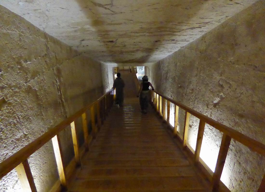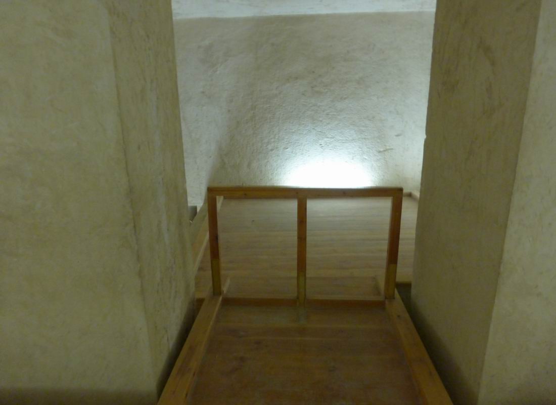 escalier raide de 25 marches, flanqué de chaque côté par une sorte de