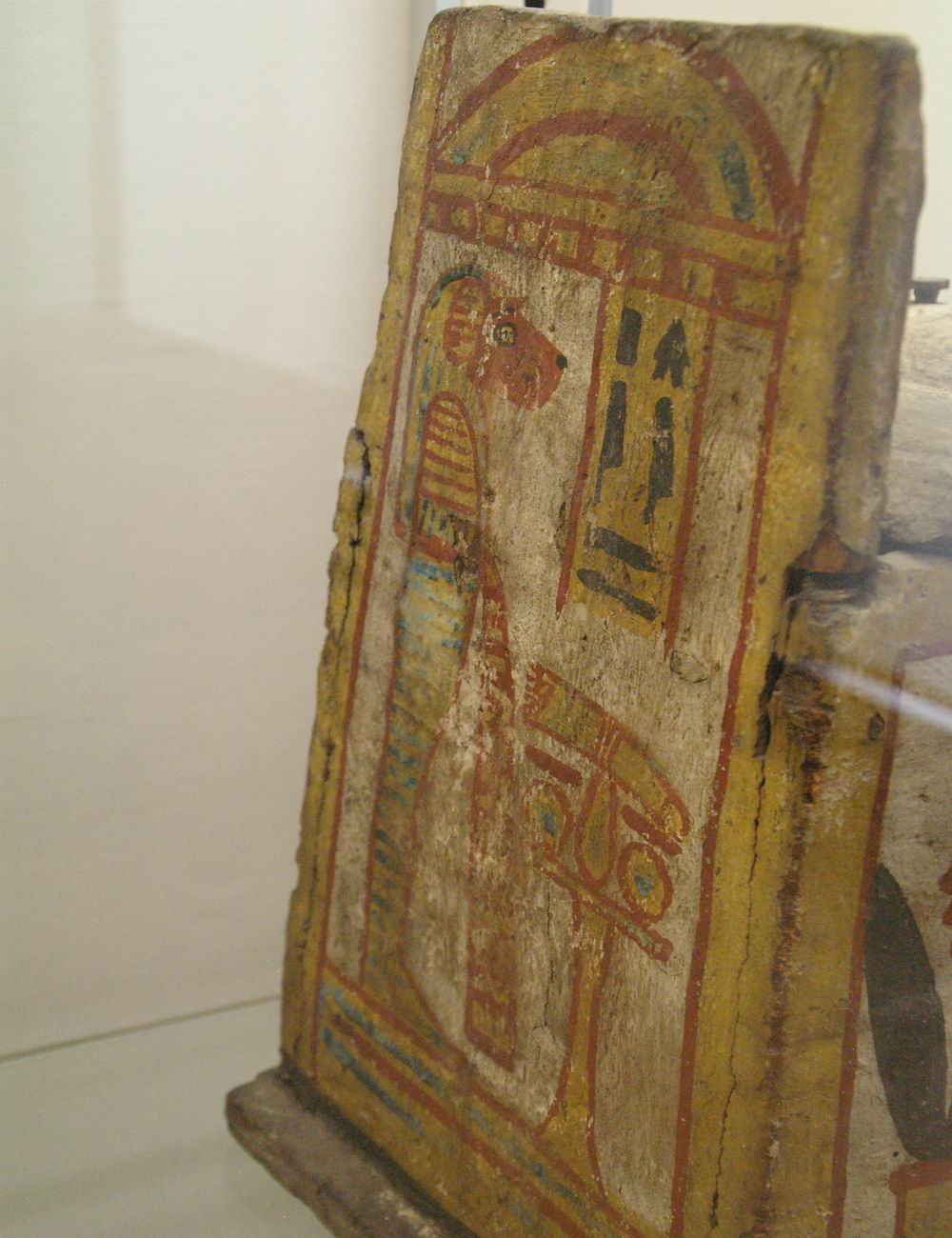 | Sur l'autre petit côté du coffre ouchebtis nous avons le dieu Hapy à tête de singe. |