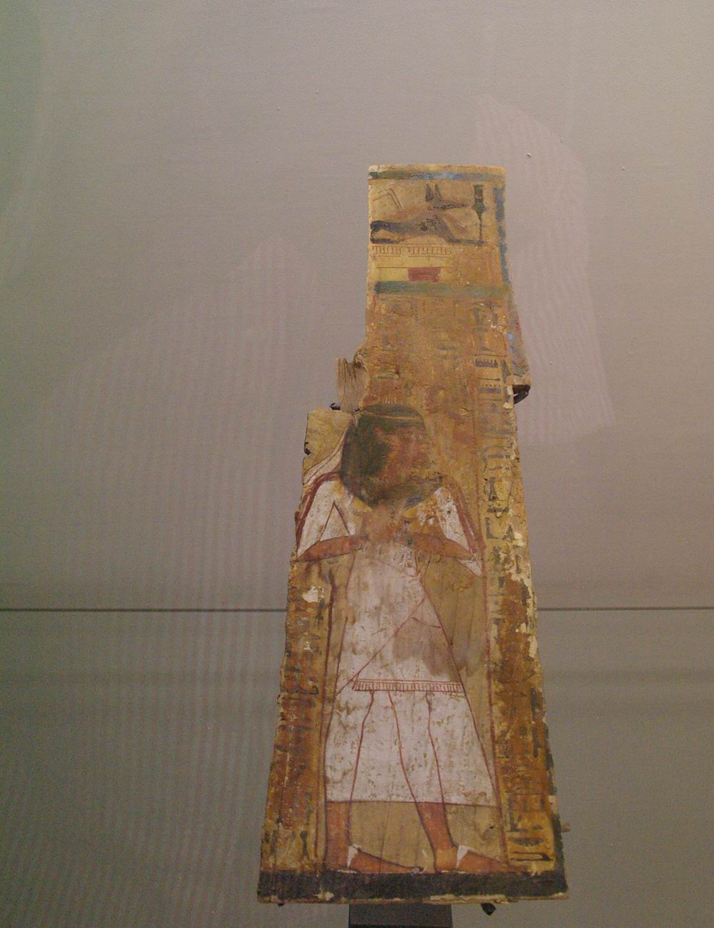 | Fragment représentant le défunt et au-dessus le dieu Anubis. |