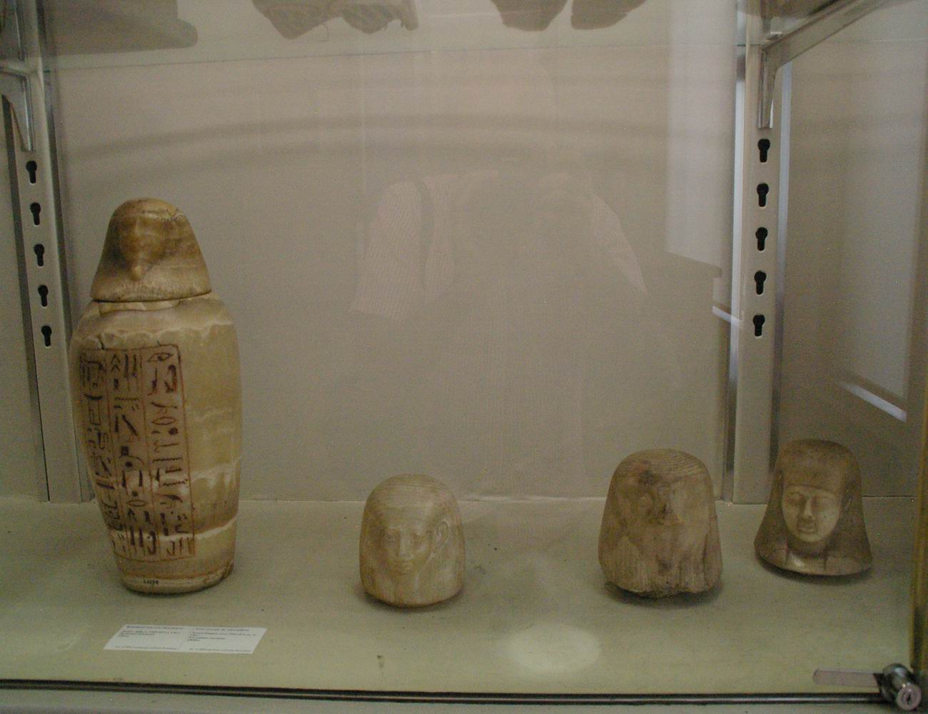 de vases. Le vase canope est au nom du dieu Hapy, l'Enfant d'Horus à visage de singe. |