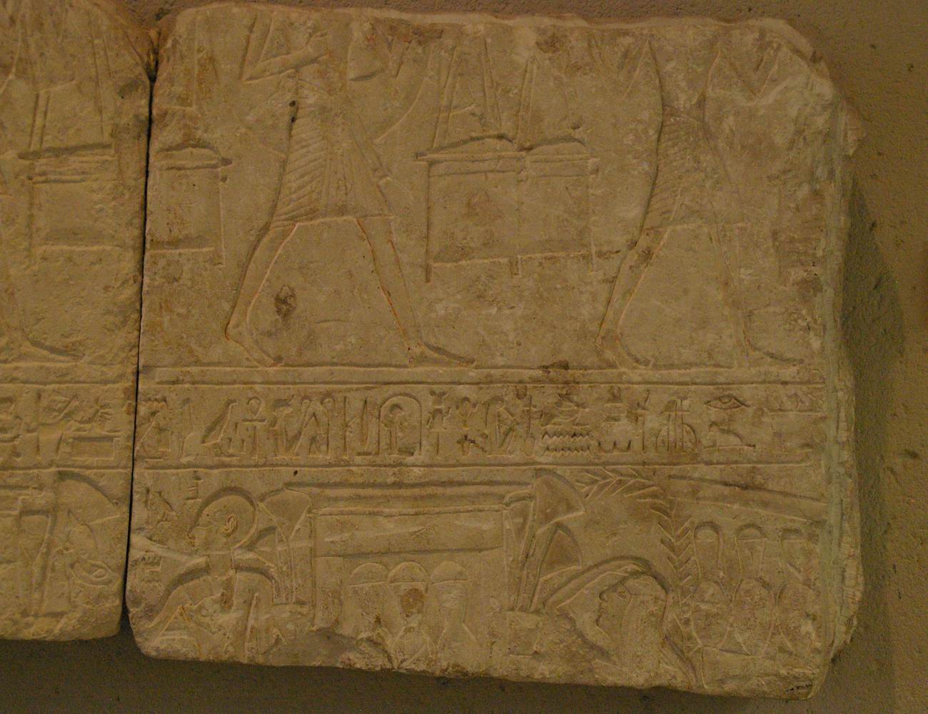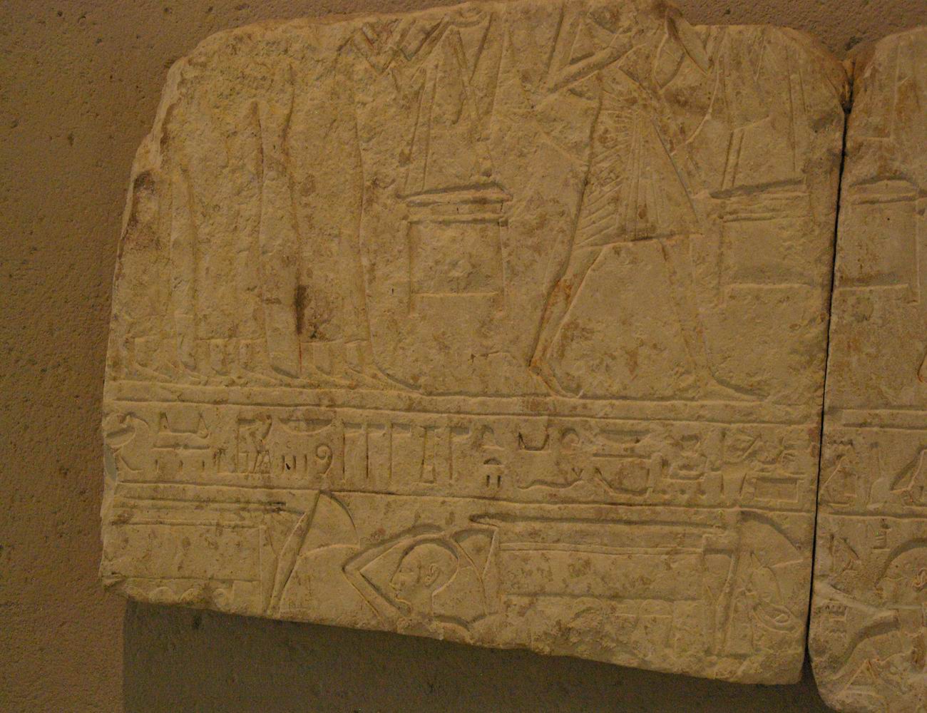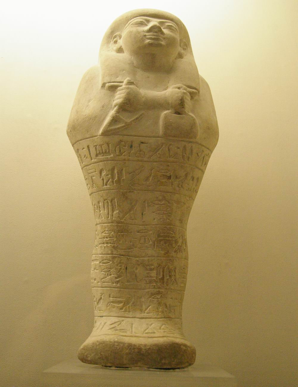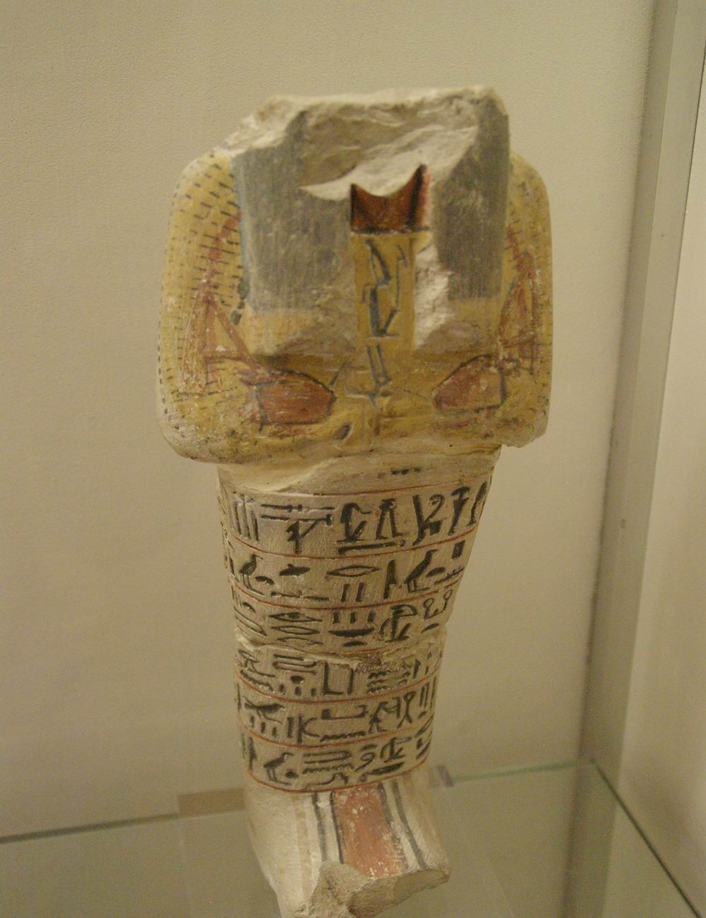 présent sur l'autre petit côté, il s'agit de Qebehsenouef. Un ouchebti. |