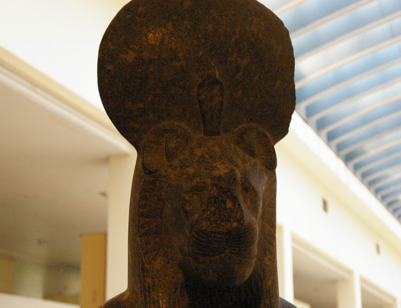 | Le disque solaire et l'uraeus sont posés sur la tête de la déesse lionne. |