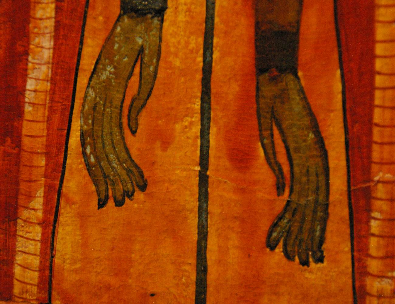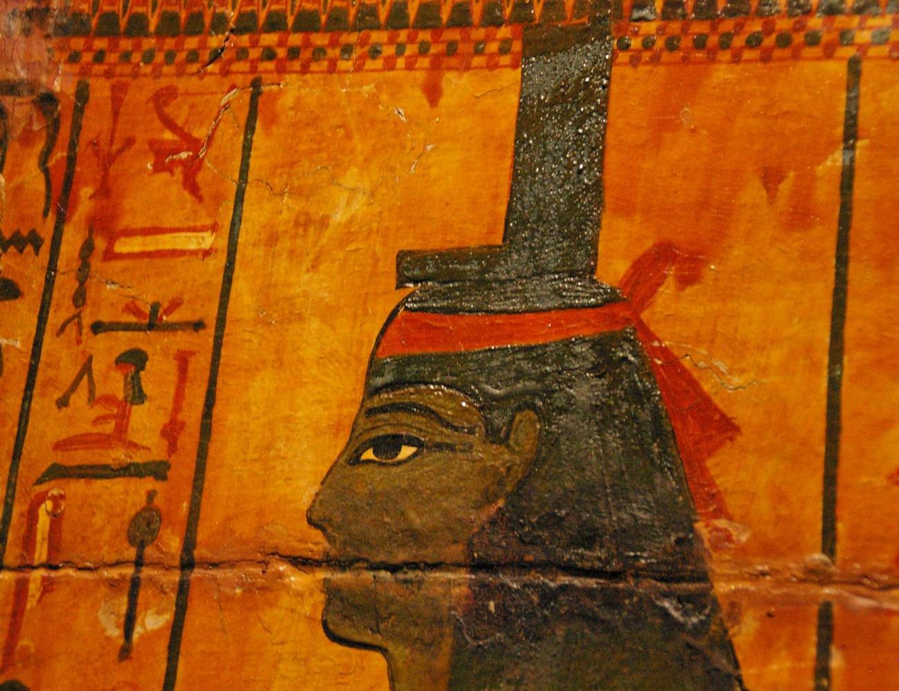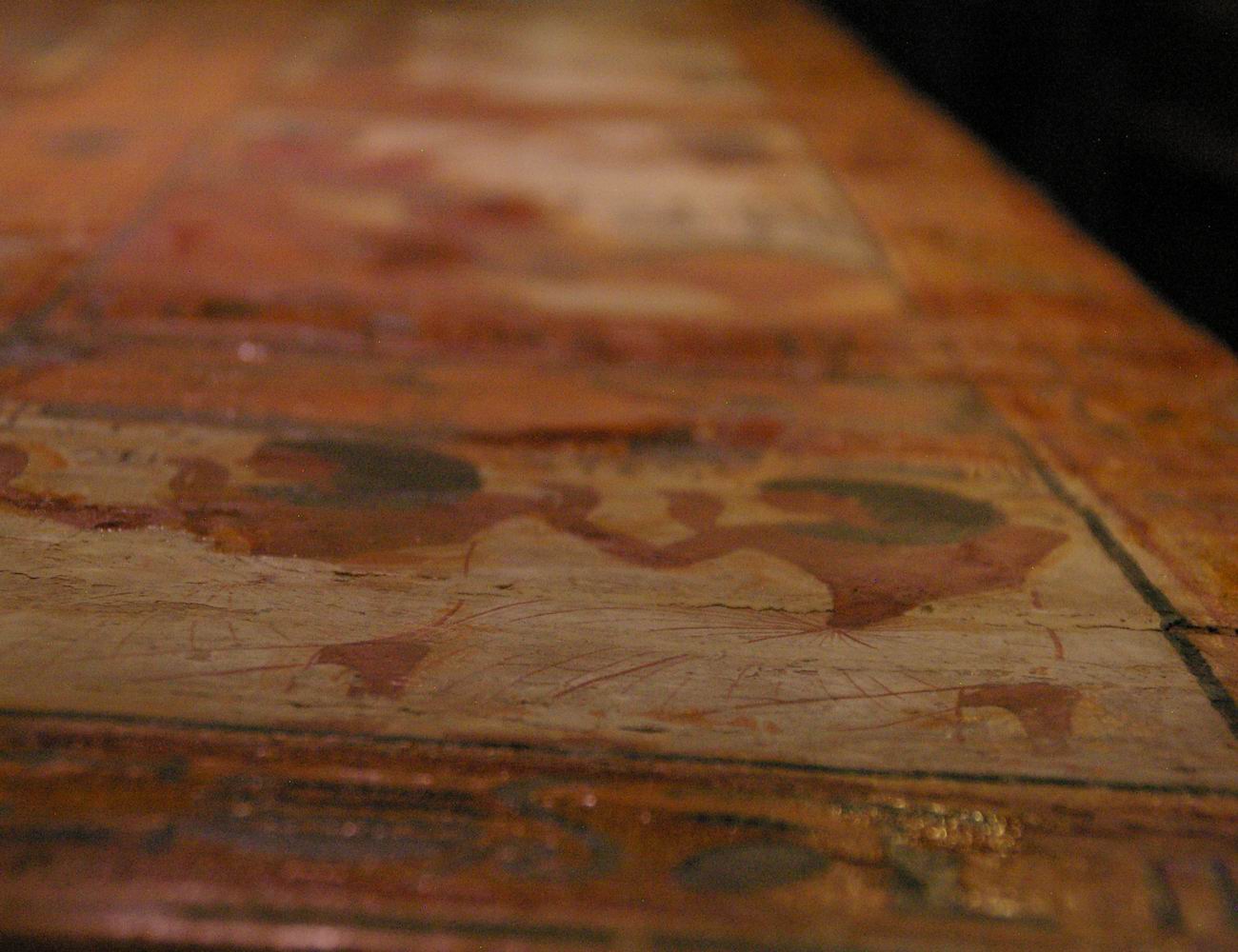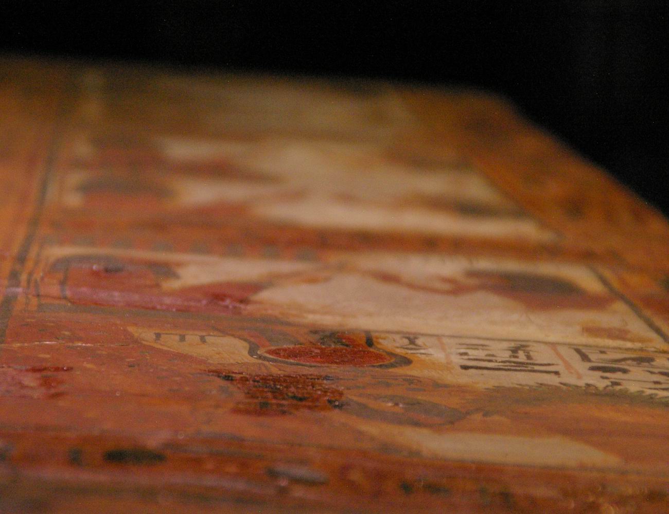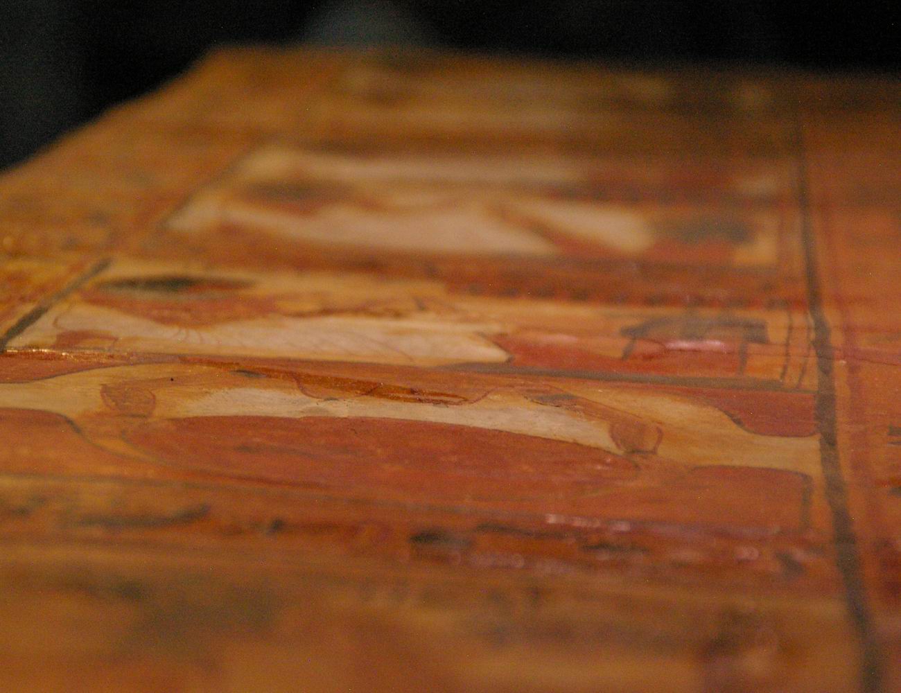 | Le cercueil de Sennedjem reprend la forme d'un naos ou chapelle miniature, que l'on trouve habituellement dans les tombes royales. |