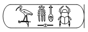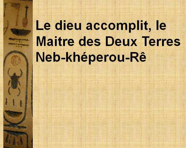 | A gauche au-dessus du cartouche du roi -Neb Kheperou-Rê- nous avons la mention : le dieu parfait, le Maitre des Deux Terres. | ||||||||||
