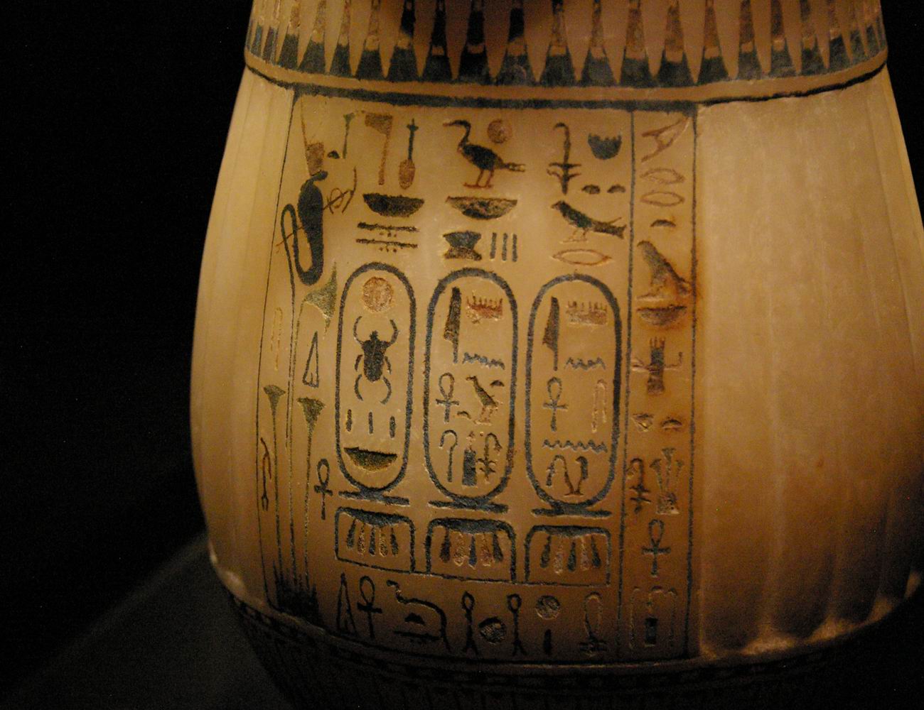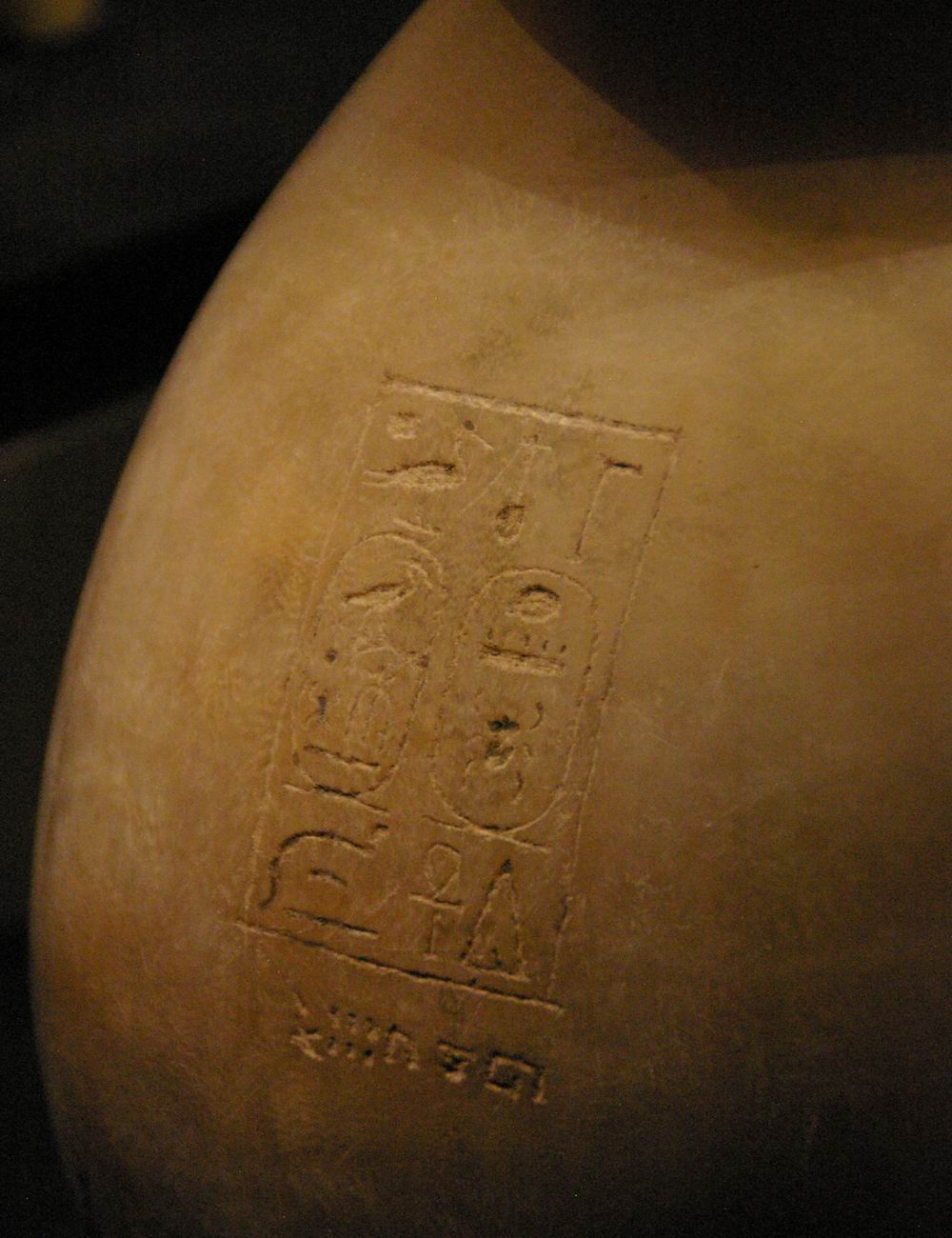 | Vase avec une inscription hiéroglyphique et deux cartouches. | ||||||||||