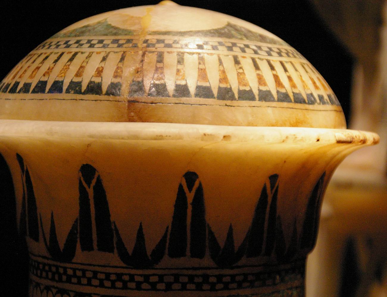 Détail du vase. Le couvercle du vase fut brisé en plusieurs morceaux par les pilleurs. |
