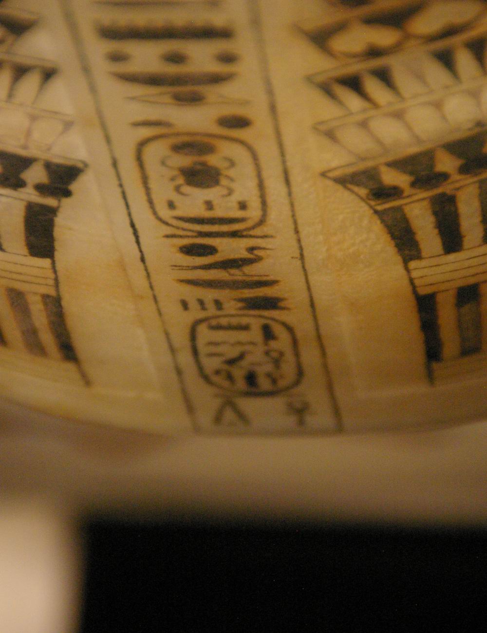 | Couvercle de la boîte en forme d'un cartouche avec le nom du roi. | ||||||||