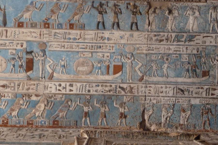 rempli de représentations de dieux naviguant dans leurs barques et