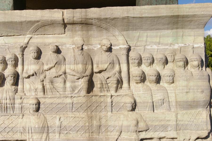 la spina. Cet événement est rappelé par les reliefs ornant les quatre faces du socle. |