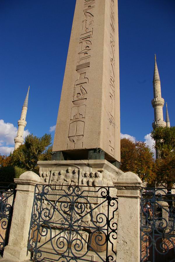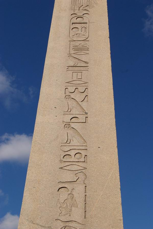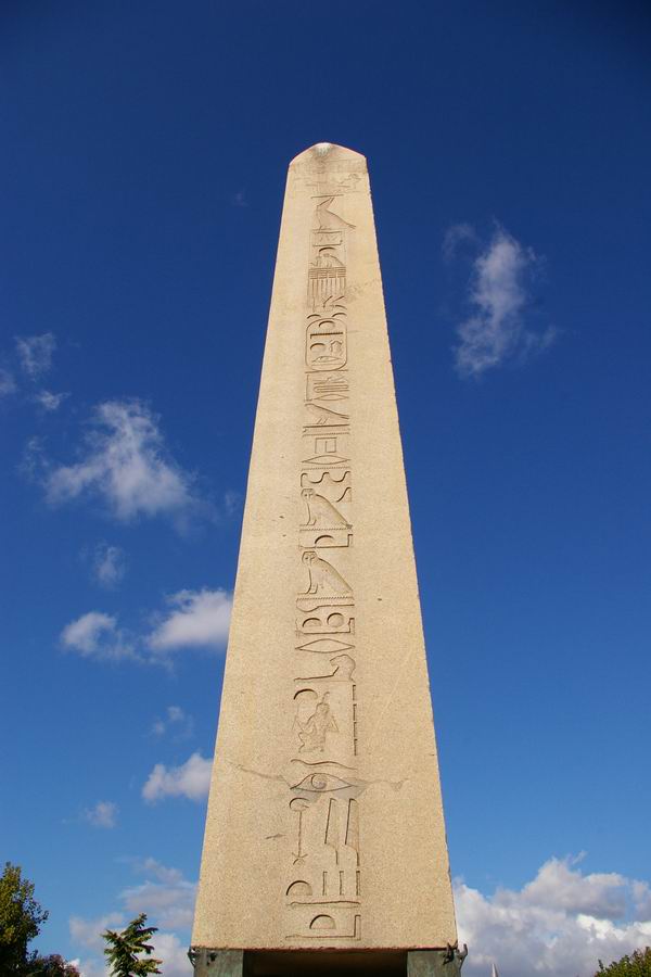 Langue grecque byzantine. KIONA TETPAΠΛEYPON AEI XΘONI KEIMENON AXΘOC MOYNOC ANACTHCAI ΘEYΔOCIOC BACIΛEYC TOΛMHCAC ΠPOKΛOC EΠEKEKΛETO KAI TOCOC ECTH KIΩN HEΛIOIC EN TPIAKONTA ΔYO Traduction : "Cette colonne à quatre côtés qui gisait à terre, seul l'empereur Théodose osa en relever le fardeau ; Proclos fut invité à exécuter son ordre ; et cette grande colonne se dressa en trente-deux jours". |