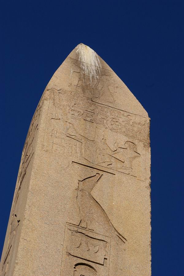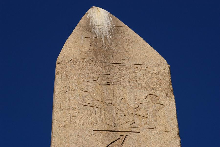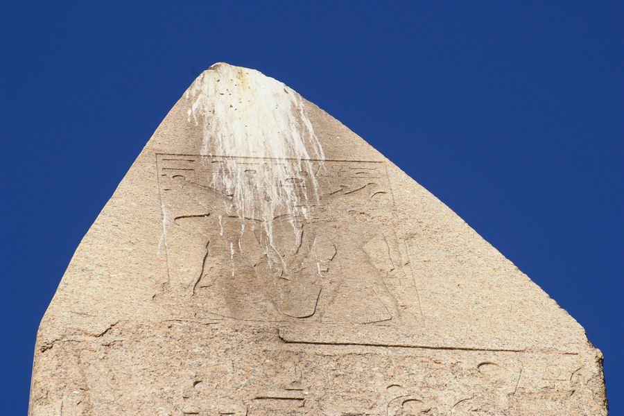 | Les pigeons, les mouettes et les cormorans laissent leurs excréments sur le pyramidion de l'obélisque. |