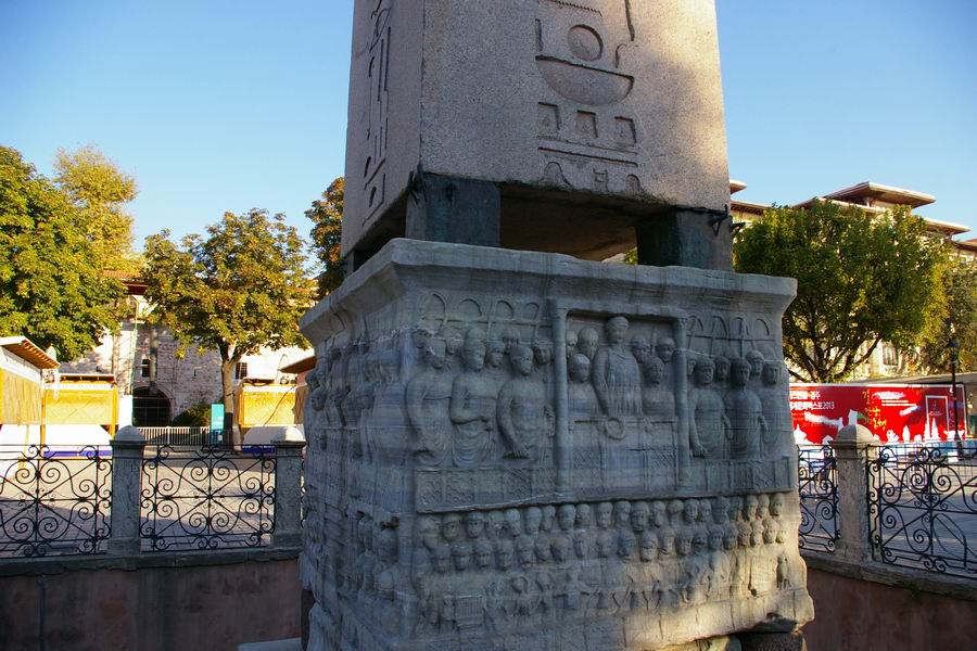 | Aujourd'hui les bases du socle de l'obélisque, de la colonne Serpentine et de l'obélisque Murée sont à 3 m sous le niveau du sol. |