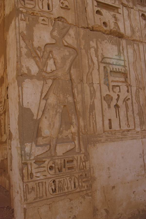 | De part et d'autre de la chapelle le roi tient le bâton de commandement et la massue. |