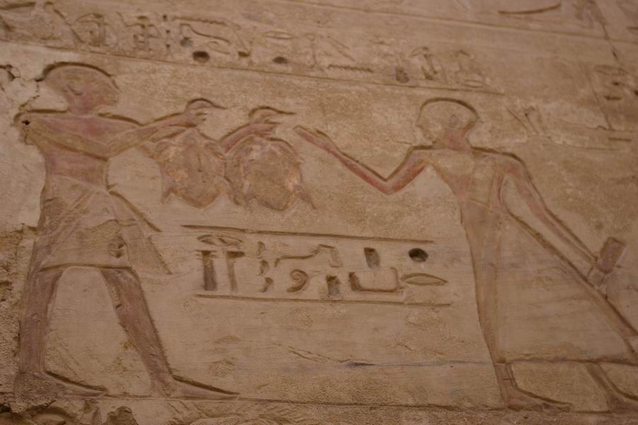 | Offrande de la Maât au dieu Happy, le dieu du Nil |