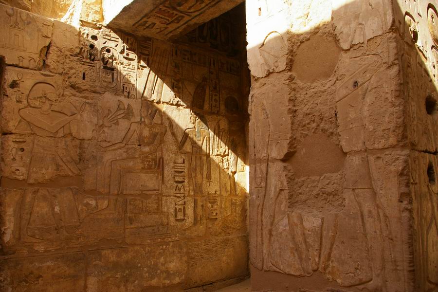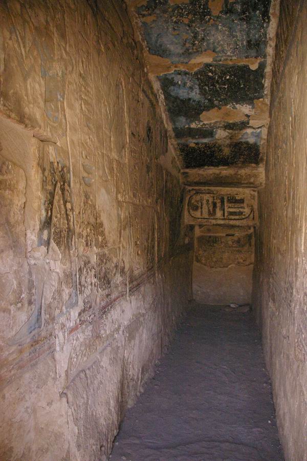 hypostyle. Une rampe permet d'accéder à la deuxième salle hypostyle. Celles-ci comprenait 8 colonnes et desservait elle aussi un certain nombre de chambres. |
