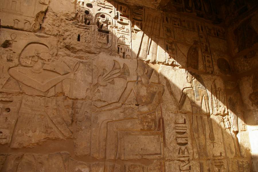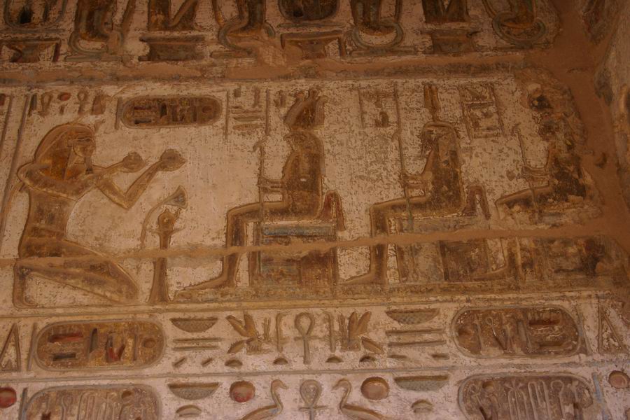 | Sur les murs offrandes du roi aux divinités. |