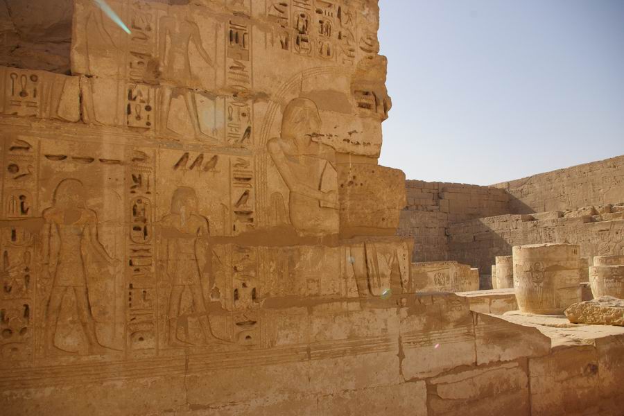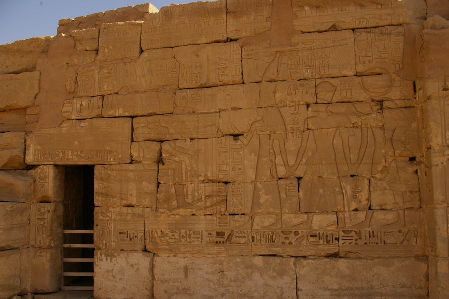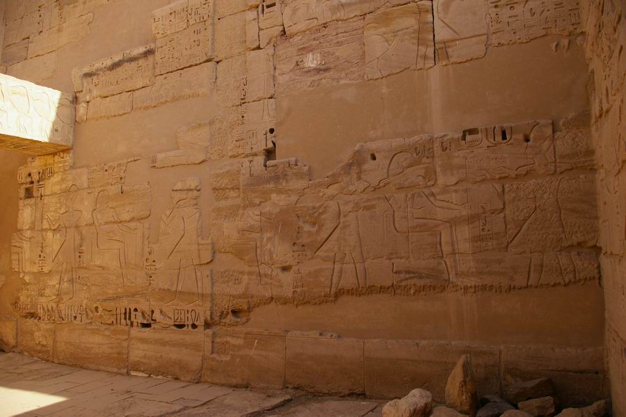 hypostyles. Mur de séparation des salles hypostyles. A droite la première salle hypostyle. |