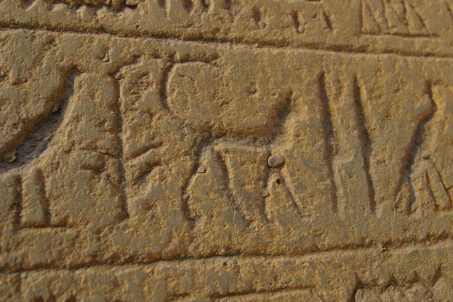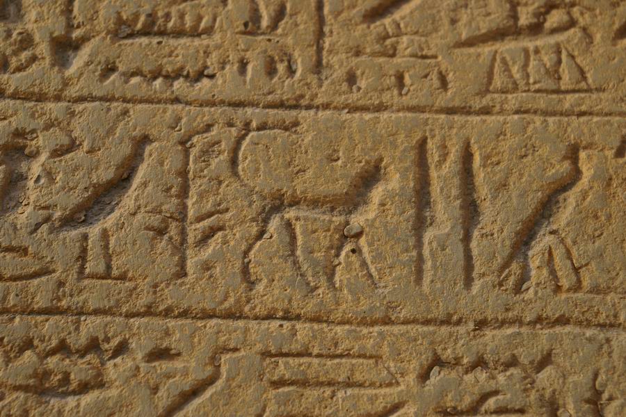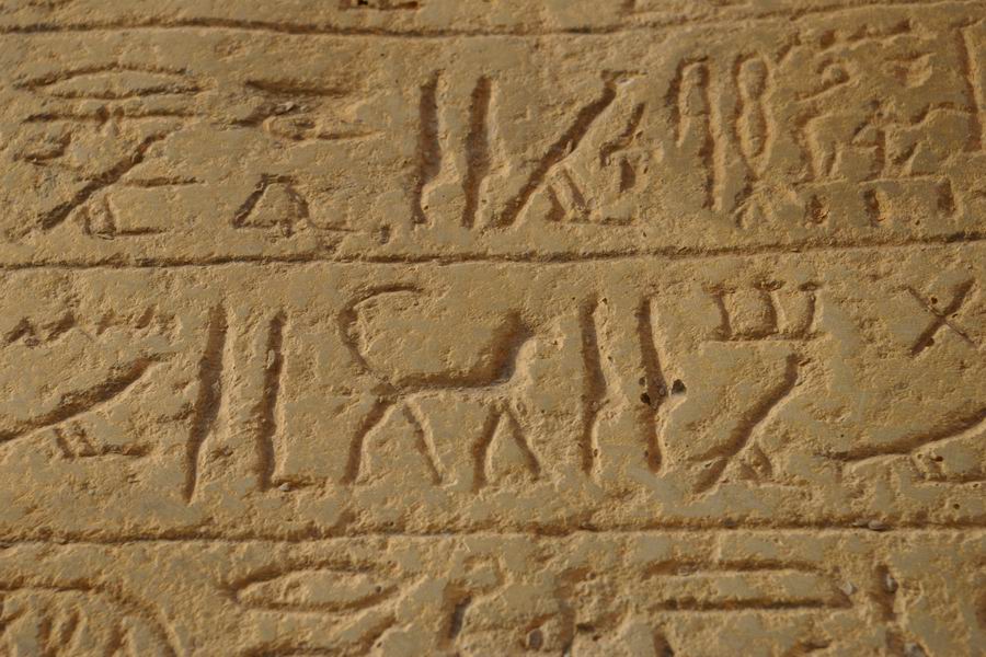 Les hiéroglyphes sont gravés dans le creux et à l'intérieur de lignes horizontales. | ||||||||||||