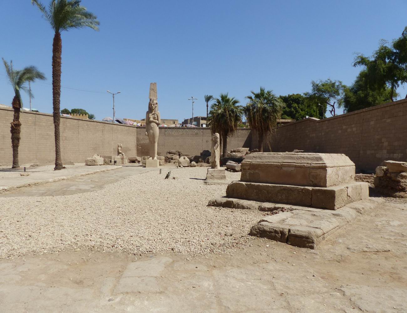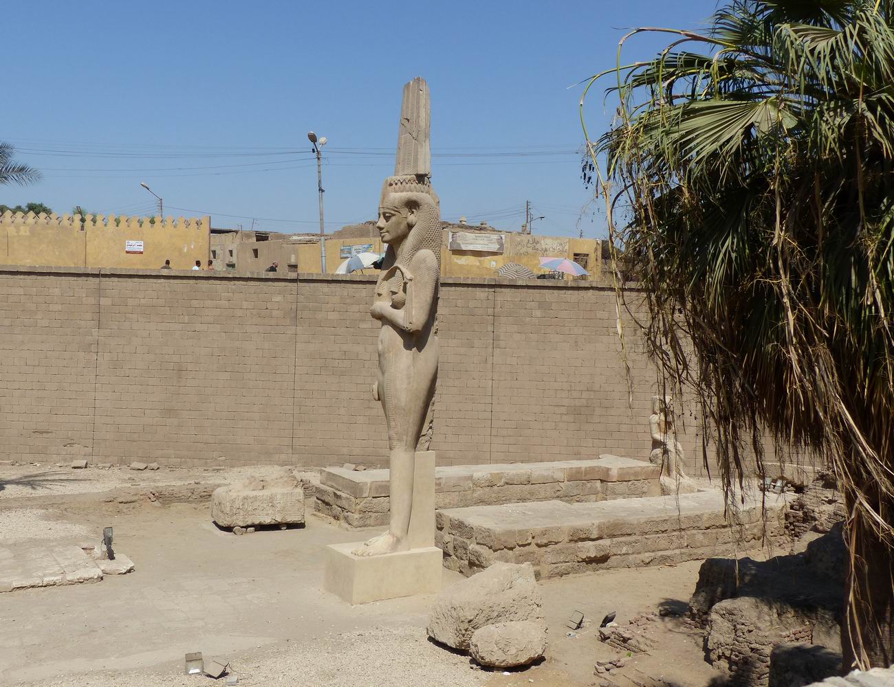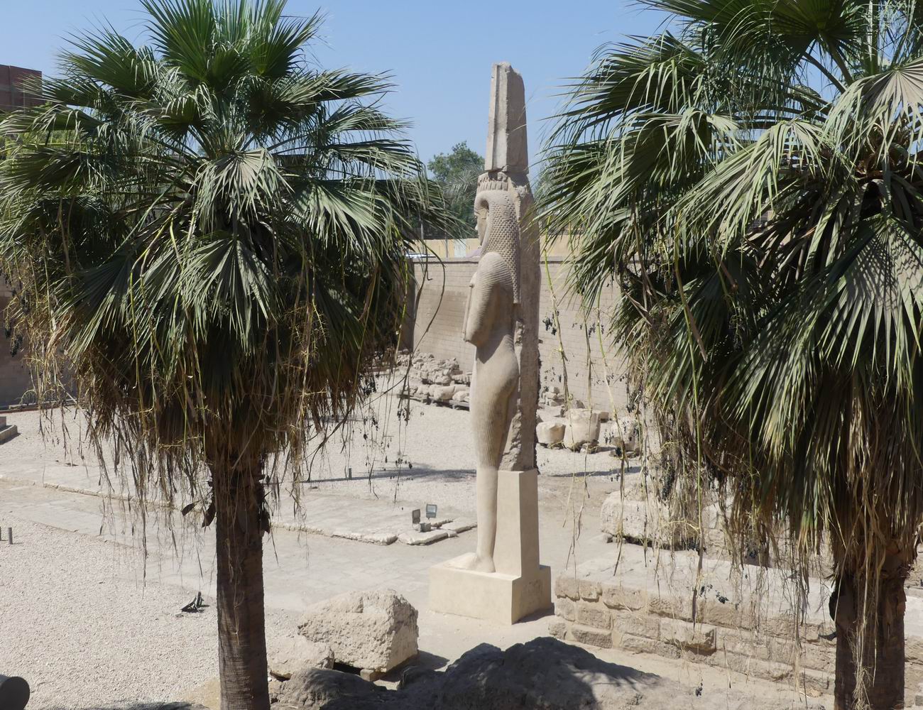 | La statue a retrouvé sa place qui flanquait jadis la porte d'un temple d'Isis, parèdre du dieu Min. | ||