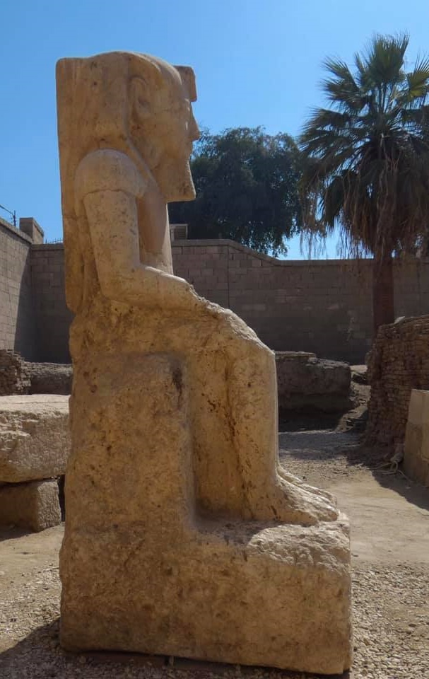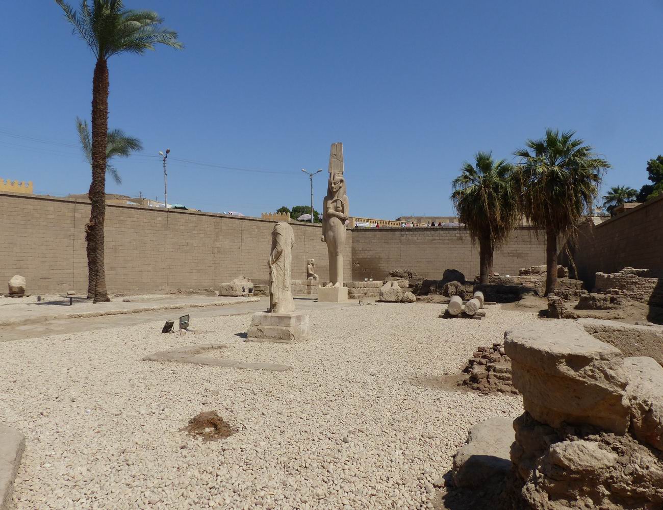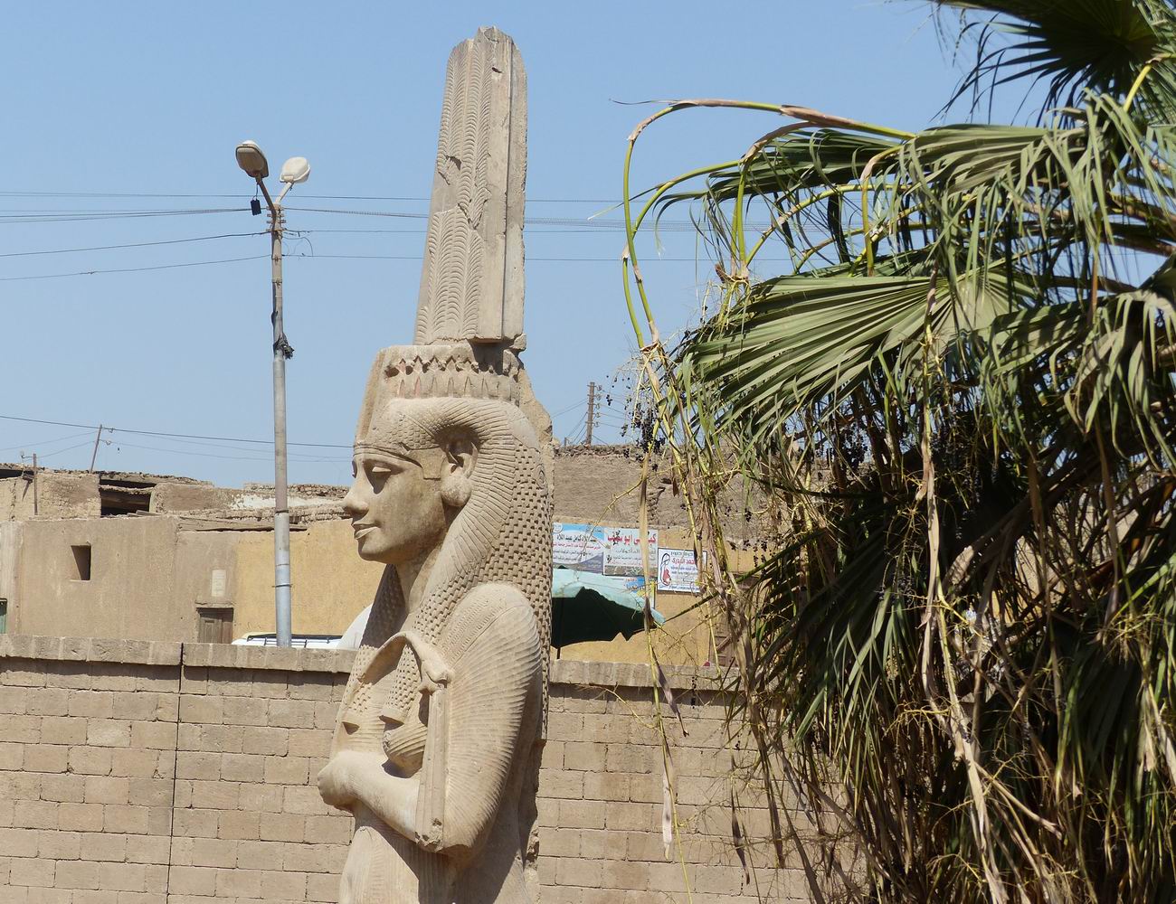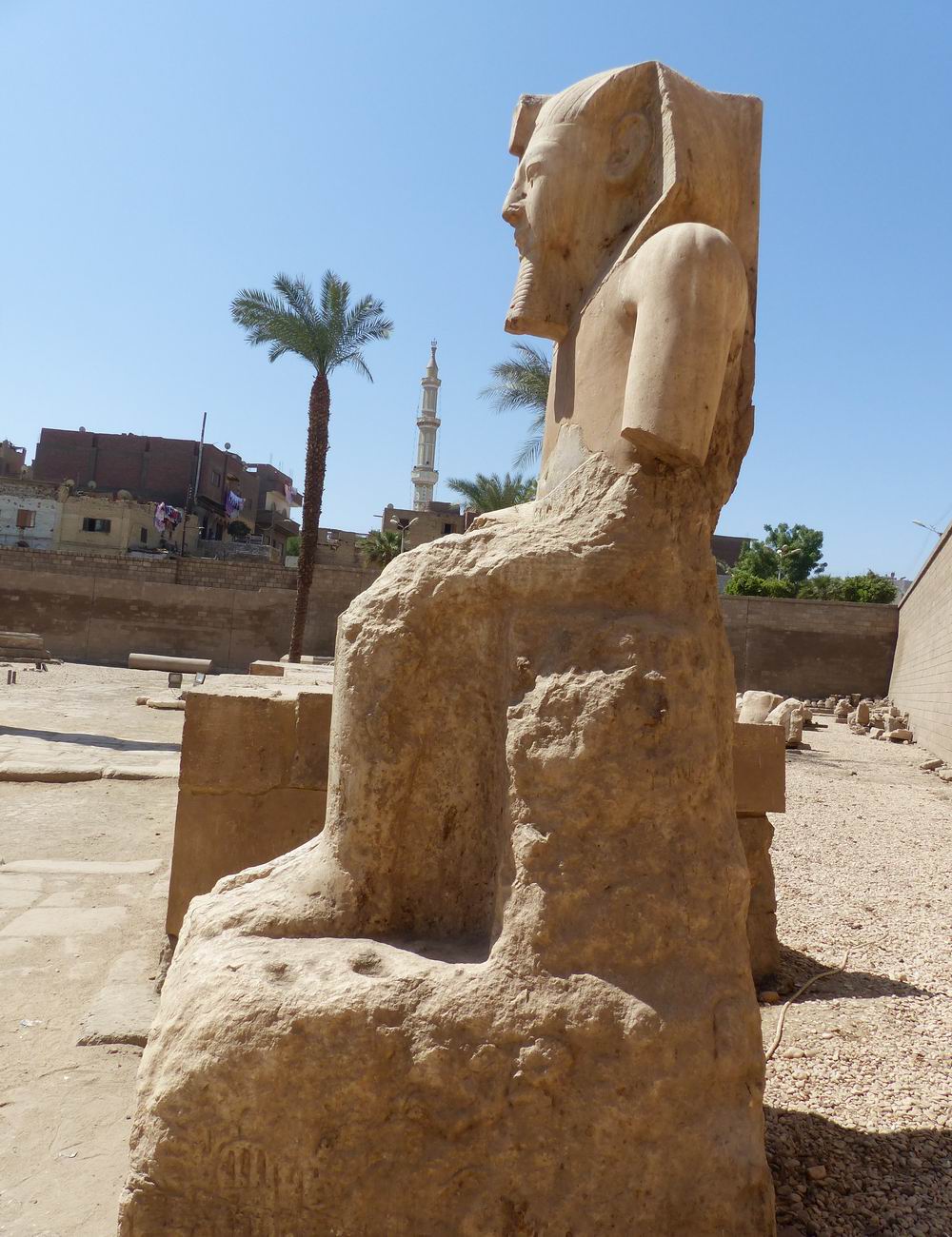 | La statue a retrouvé sa place qui flanquait jadis la porte d'un temple d'Isis, parèdre du dieu Min. | ||
