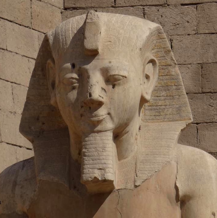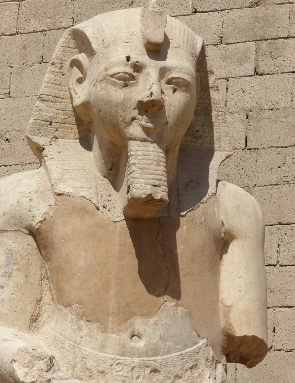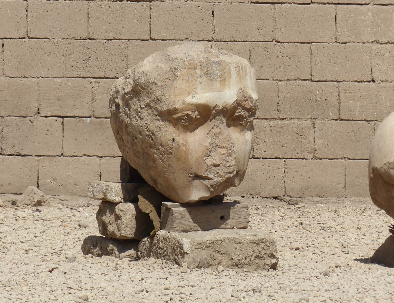 | Visage de Ramsès II, dont la statue devait flanquer l'entrée du temple de Min. | ||