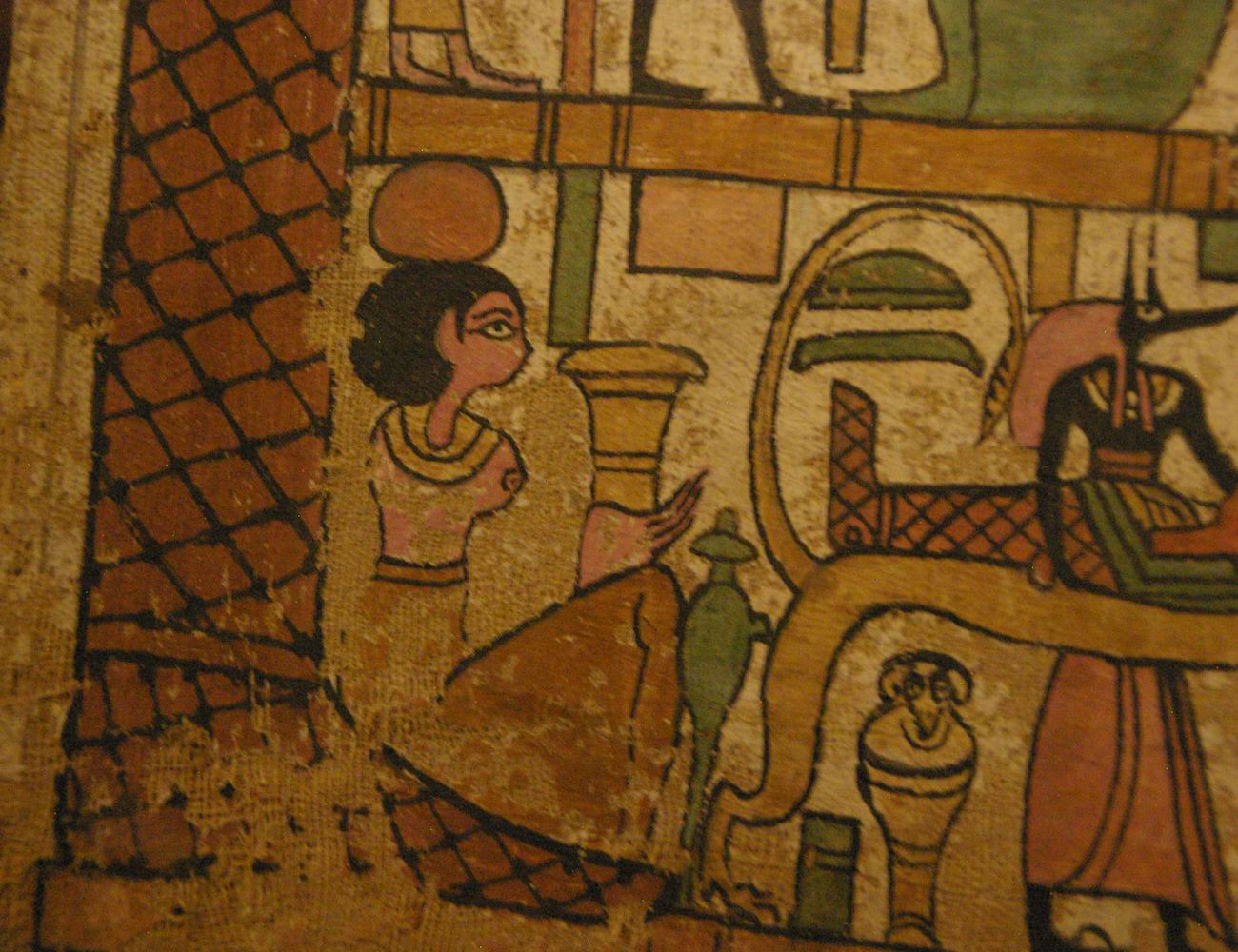 | Isis assise aide le dieu Anubis. |