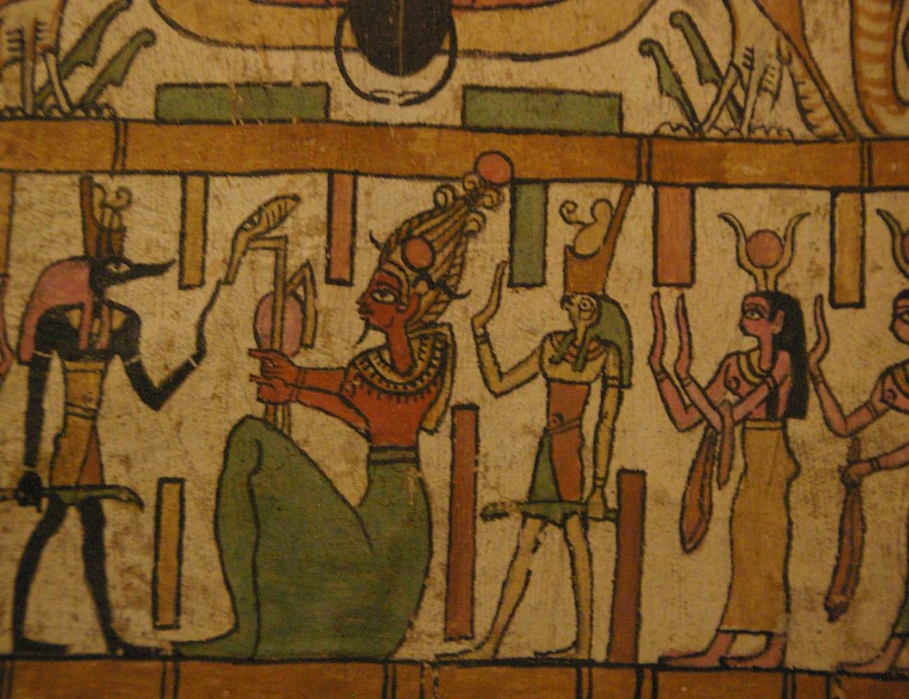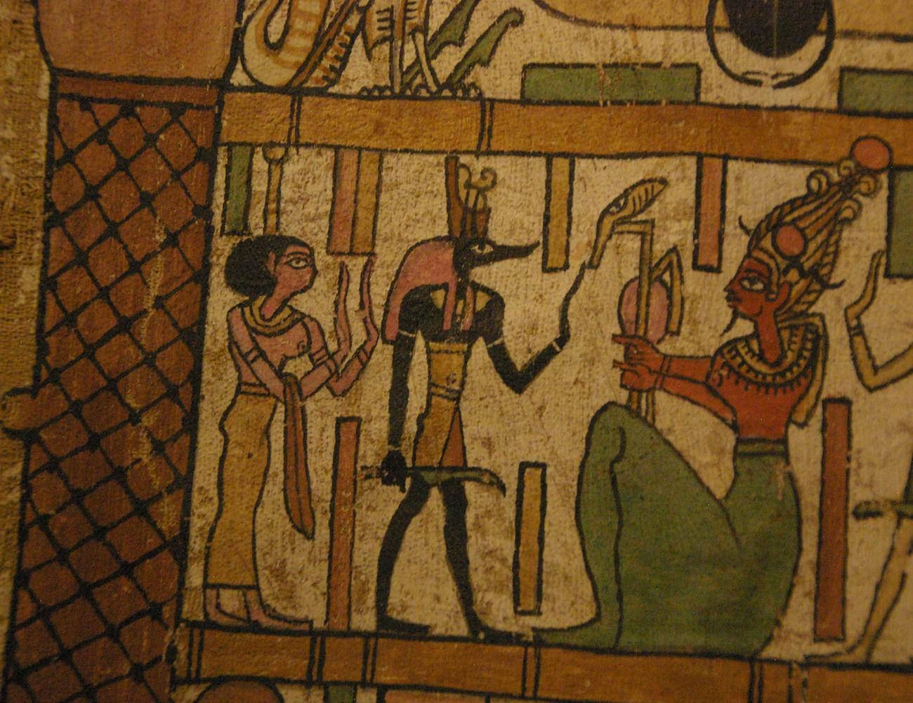 du haut Anubis est suivit de Nephthys et il officie devant Osiris qui est