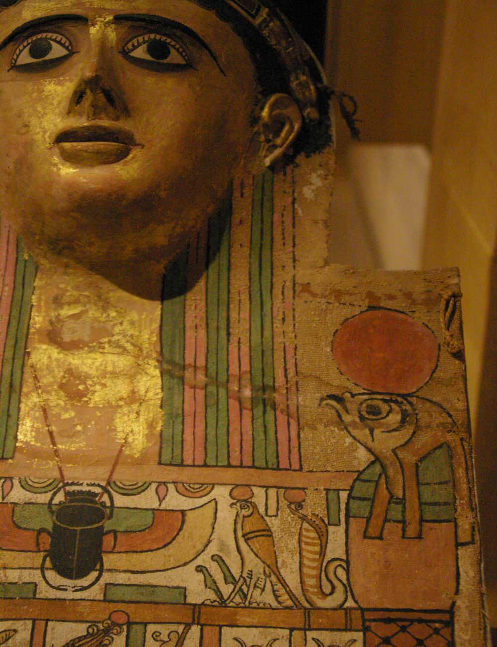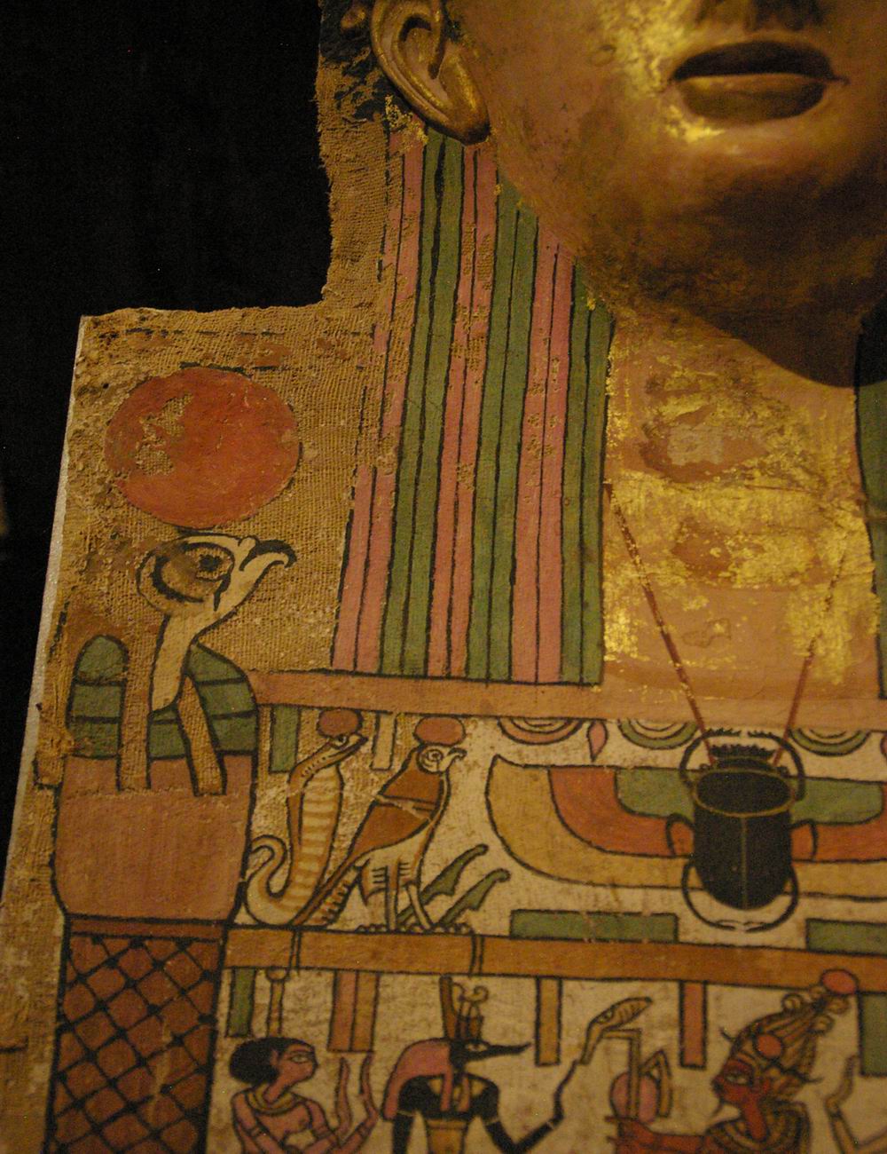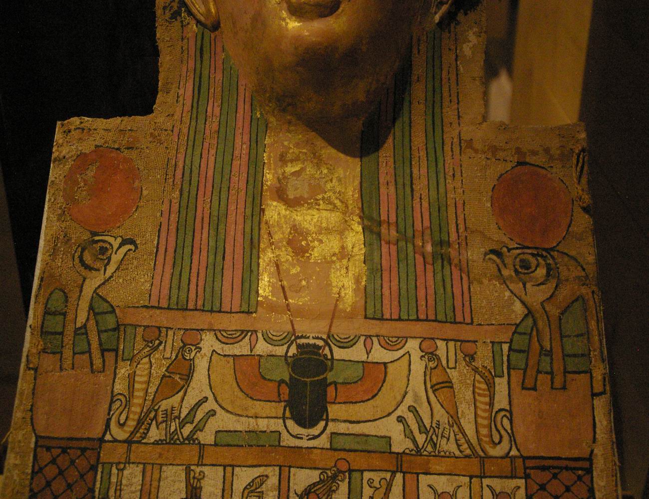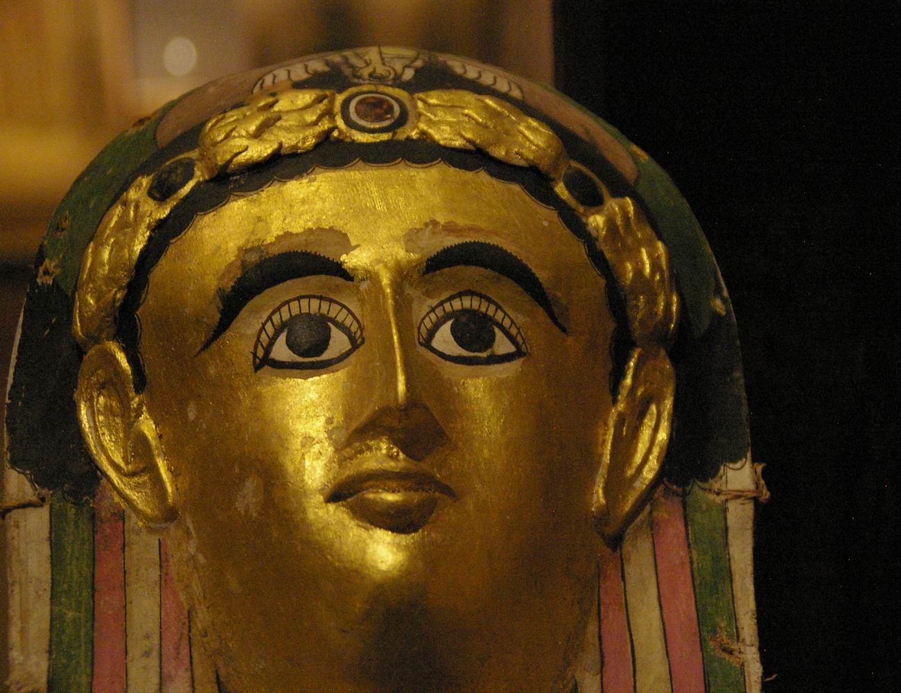 partiellement doré de Cratès, provenant de Deir el-Medineh 150-220 ans après notre ère, hauteur 75 cm, largeur 34,7 cm et 11 cm de profondeur. |
