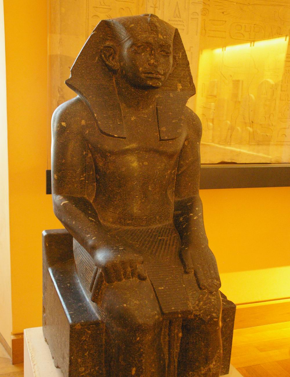 | Statue de Sésostris III assis sur un siège cubique. | ||